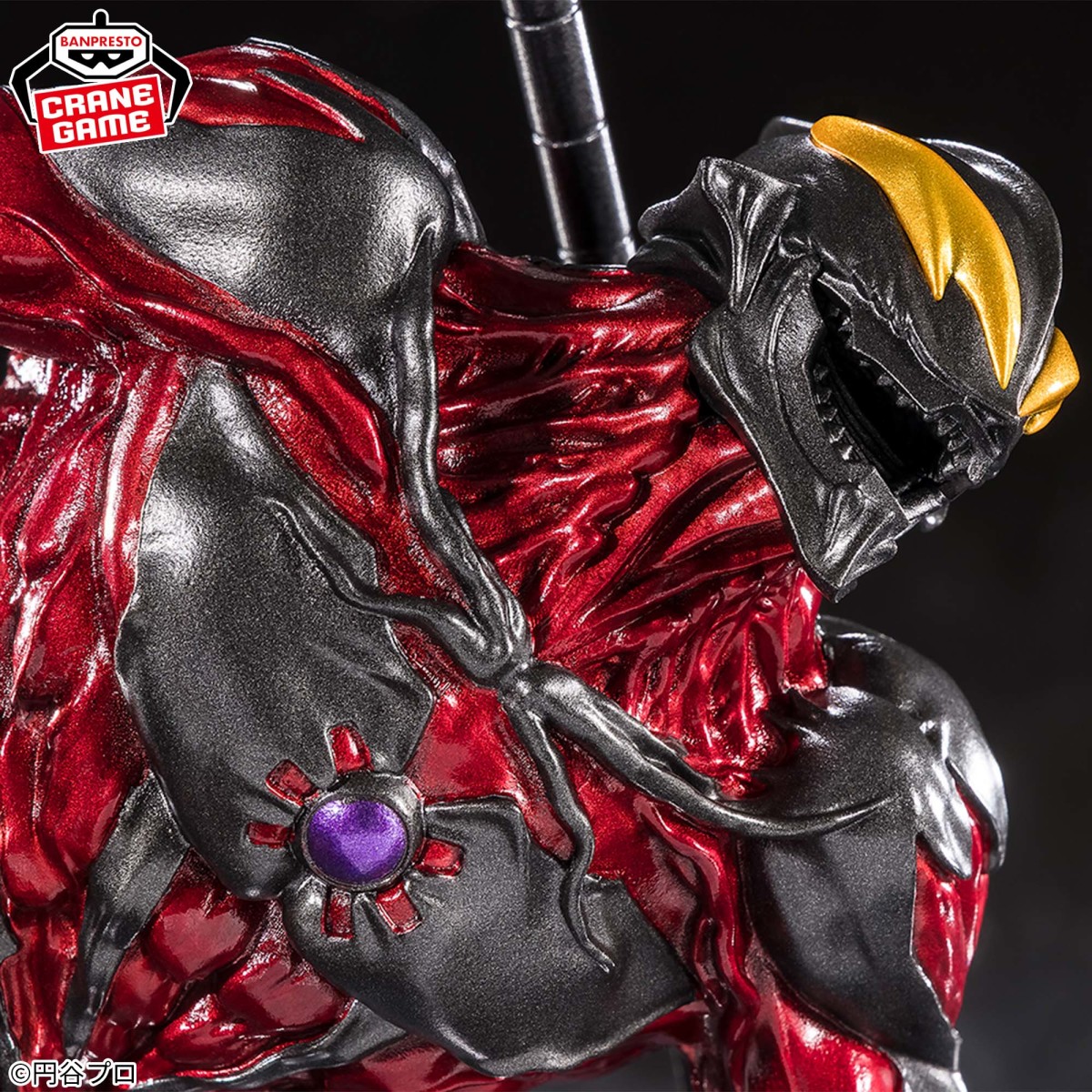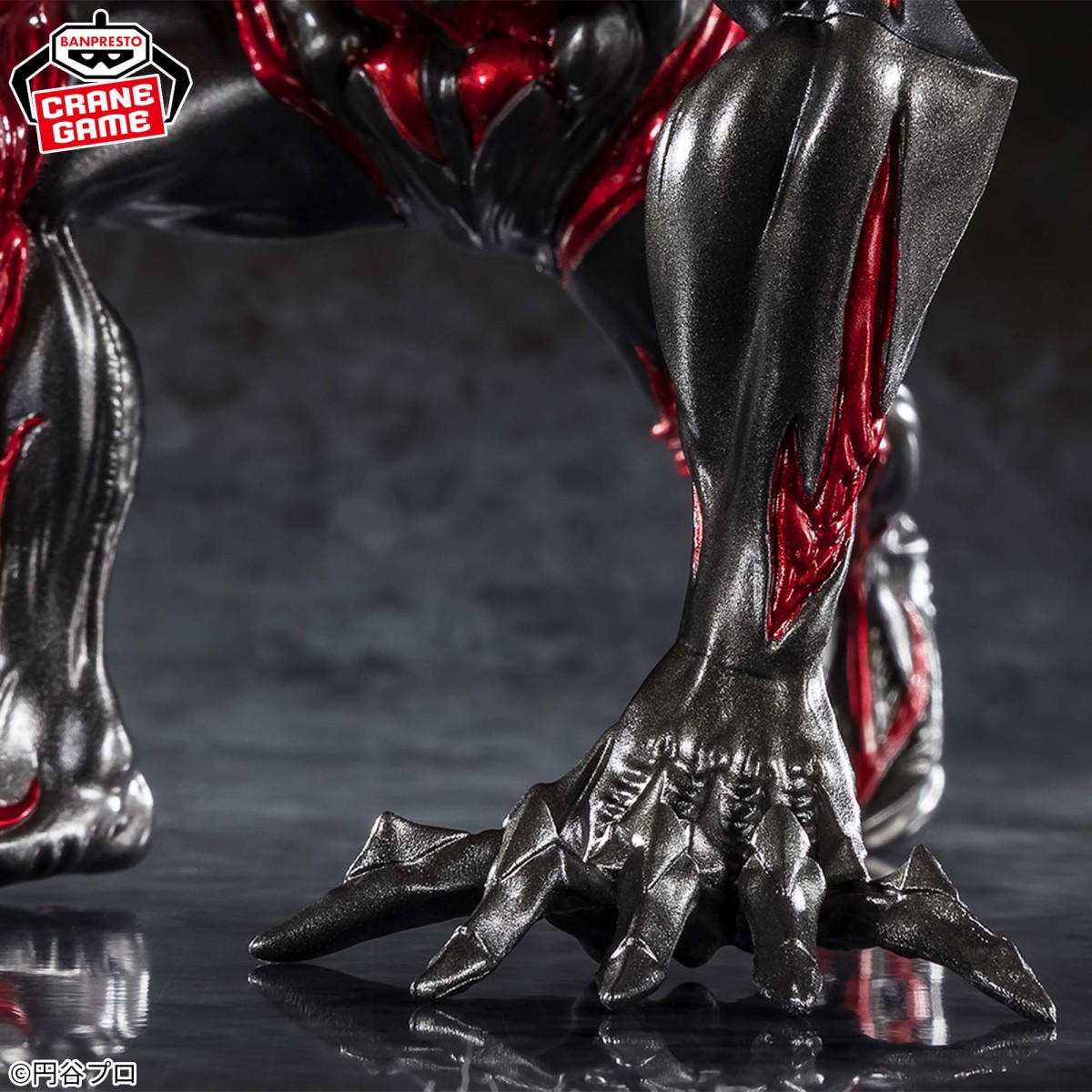 BANPRESTO「豪塊 超人力霸王貝利亞」景品,將將墮入惡道的貝利亞以約 25 公分的尺寸魄力再現!大膽的造型設計和逼真的金屬色彩,滿嘴獠牙的奸險笑容將貝利亞的邪惡魅力展現得淋漓盡致~賦予全身壯碩結實的肌肉,以令人恐懼的姿態從低處逼近,手持愛用的武器「千兆戰鬥儀」;異常巨大的手臂傳達出他壓倒性的力量和兇猛!與另售的「超人力霸王之父」共同賞玩,重現光明與黑暗的殊死搏鬥~那場宿命般的對決!