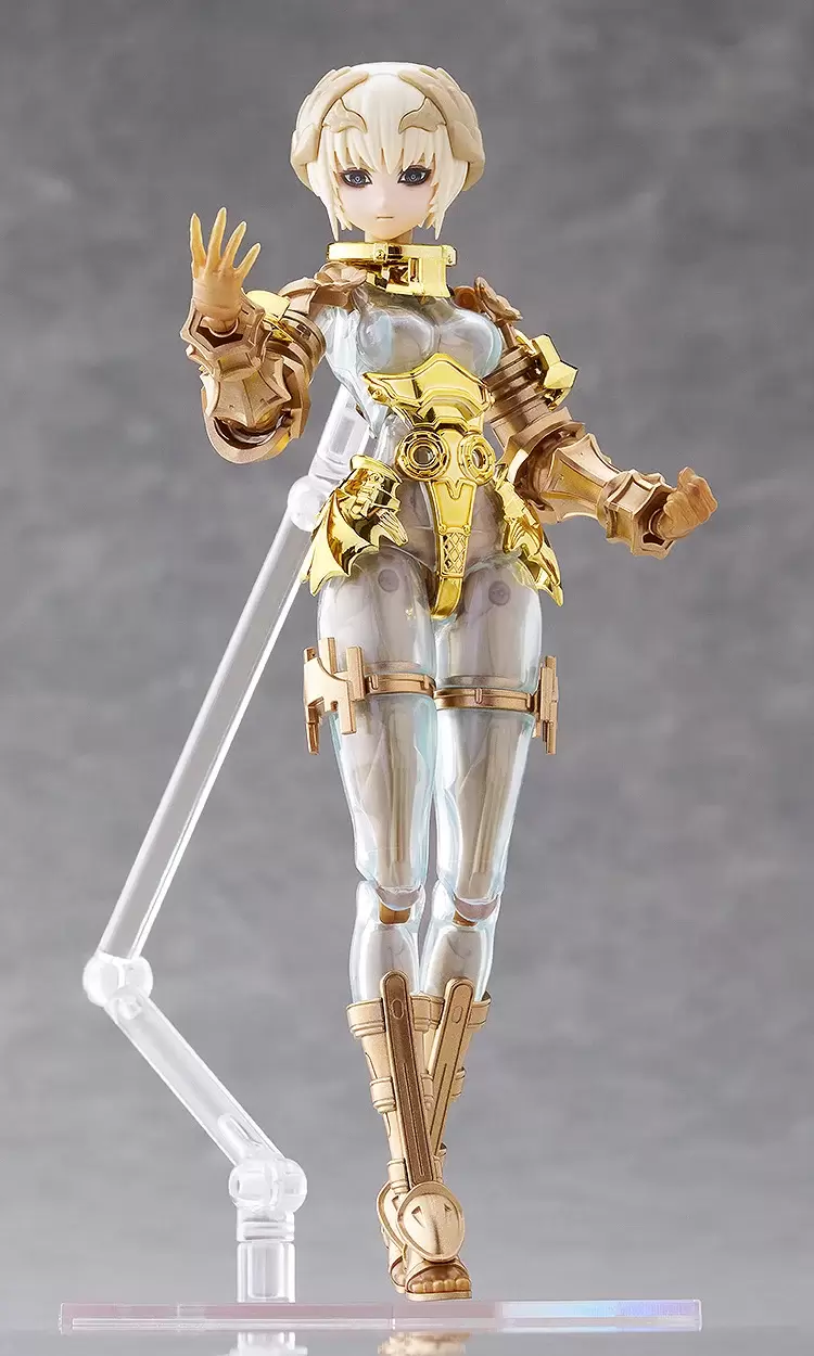 外裝零件部分透過精密成形零件再現了融合神像、羽翼的華麗裝甲造型,懸浮在雙腿外側的十字架造型零件使用透明支架表現。武器更有「劍」、「盾牌」與全長達 30 公分的巨大「權杖」,權杖頂端以精密的零件分割再現特徵的天球狀設計、內部的齒輪結構。替換本體的腿部零件並裝上外裝後,便能再現神聖莊嚴的戰鬥姿態。