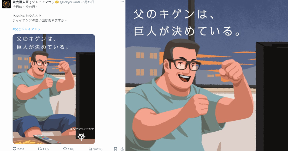 跟台灣不太一樣,包含日本與歐美、甚至亞洲其他地方的「父親節」都是在 6 月的第三個星期日。前日 ( 6/15 ) 日本父親節,許多企業都紛紛在 X 上推出溫馨感人的父親節相關貼文。不過這次卻有一家讓人意想不到的單位的操作似乎翻車了,那就是日本職棒讀賣巨人隊的官方帳號。