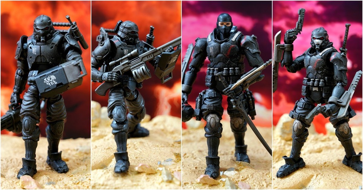 一個我相信已經介紹到口臭的系列,亦證明我對這系列有多喜愛!今次這一對靈火部隊的成員在外觀及設計上,我覺得是站在裝甲服的頂端,特別是頭盔的設計非常符合本人口味。關節方面不用多介紹,可動性高但把玩時有一種黏黏的感覺。舊化塗裝一如以往的豐富,但有部分例如頭盔位置過了火位。我以 thinner 將多餘的溢色抹走就可以了。武器亦同樣豐富,特別是烏鵲!
