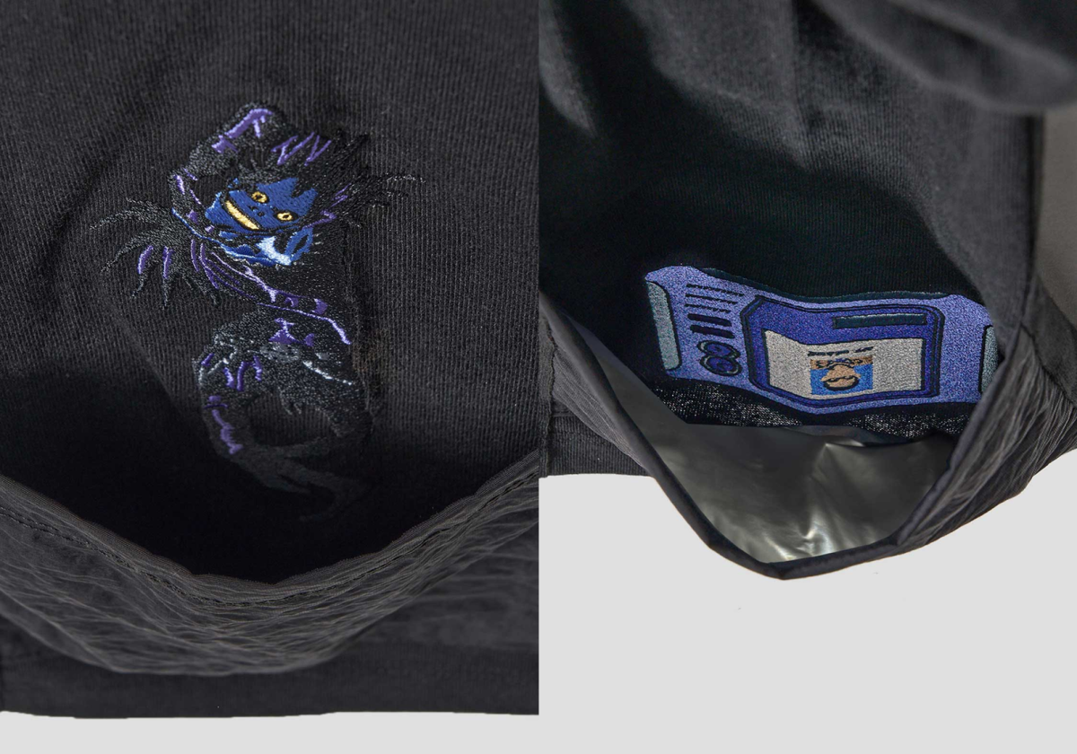 設計服飾廠牌「graniph」本次聯名的服飾商品多變,並不僅限於簡單的短 T 或是外套穿搭,整體設計感也將各作品的世界觀與名場面融入其中,品項更是非常多變。這也是雙方首次聯名,非常值得喜歡《死亡筆記本》的粉絲入手。