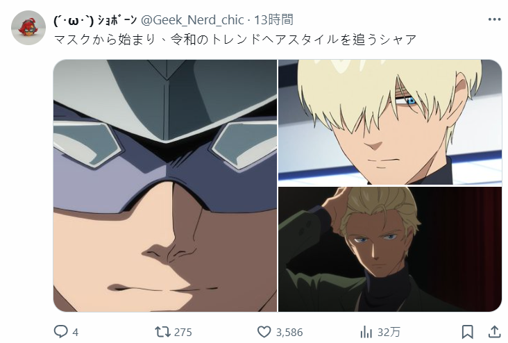 另外,本次夏亞隱身的「白水」(シロウズ)造型,也大獲網友讚賞,尤其是本話將瀏海拉起的模樣,讓不少粉絲直呼帥氣逼人,沒看過這個模樣的夏亞大佐阿 !