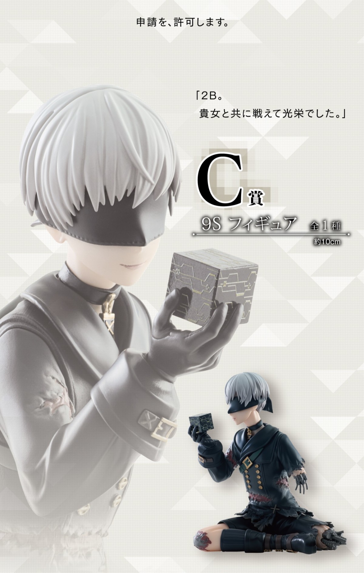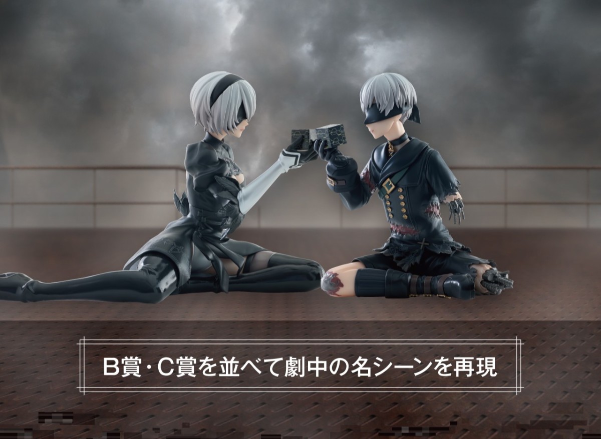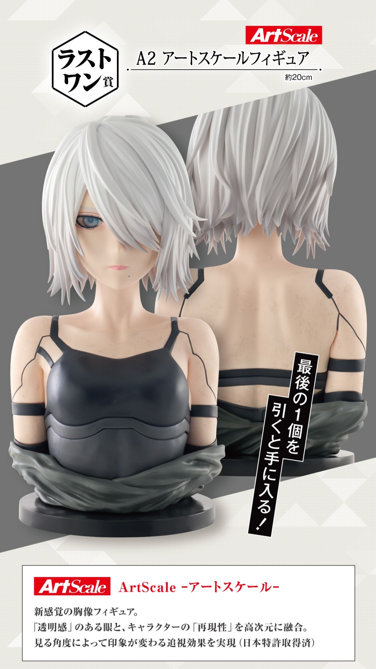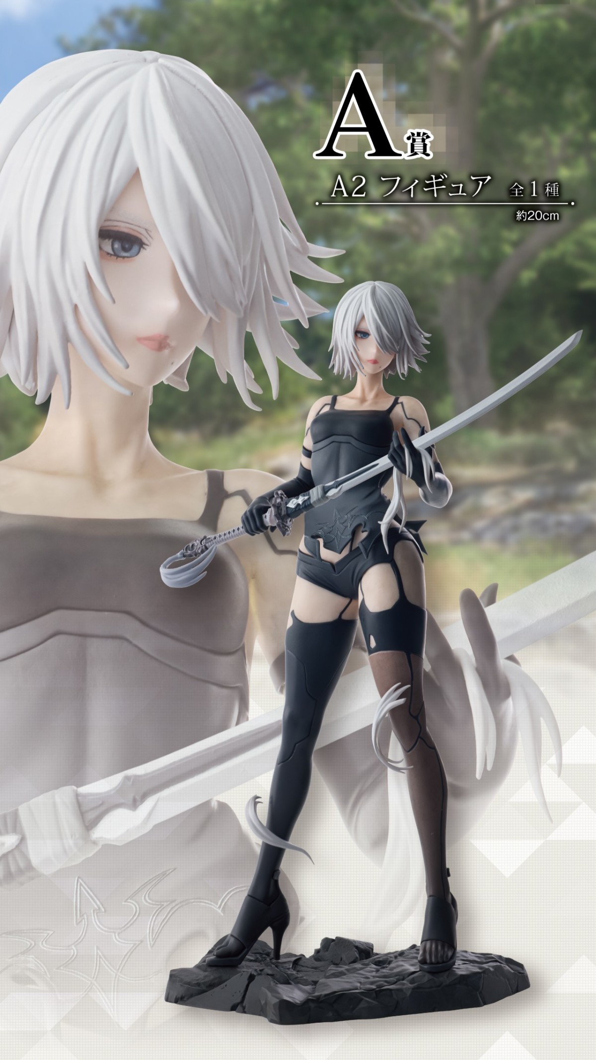 「一番賞 NieR:Automata Ver1.1a-願人類榮耀長存-」,收錄 A~I 賞+最後賞、雙重中獎機會等豐富的獎品,並搶先公開 A 賞的「A2」及 B賞「2B」、C賞「9S」角色模型,再現A2拿刀將長髮割斷成短髮、銀白髮絲散落的瞬間!另外2B與9S「申請以黑盒反應一舉殲滅敵方大型兵器」、「能與你並肩作戰是我的榮幸」的經典名場面QQ(※本產品並未搭載黑盒能源反應爆炸的功能),最後賞則是 1/3 比例的「ArtScale A2」胸像,豐富的細節值得粉絲期待~其餘獎項將於後續發表!