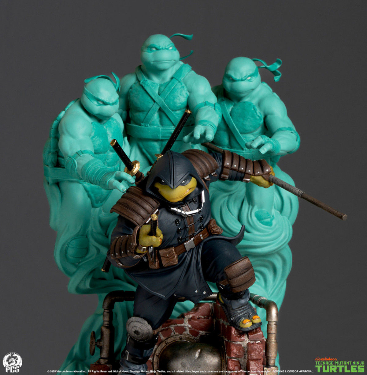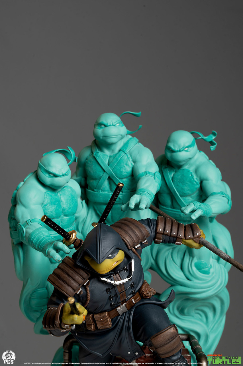 在以 1/3、1/4 大比例推出多款忍者龜雕像跟最後的浪人主題雕像之後,這次 PCS 要以較為小巧的 1/10 比例呈現「忍者龜:最後的浪人」的最新之作。僅存的浪人、不單單是把隕落兄弟們的武器帶在身上,在他的身後也還有三兄弟的魂魄守望著他。從浪人的暗色調裝束、身上的護甲、右手握著的三叉、左手拿持的長棍、背後的雙刀,以及下水道場景的都施以細緻刻畫,加上青綠色的鬼魂,整體的視覺效果可說是極具份量。