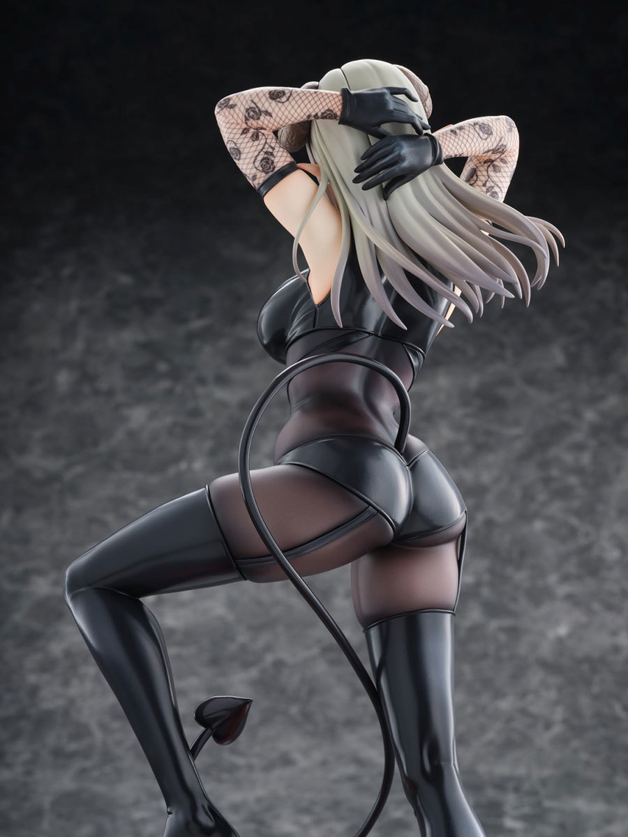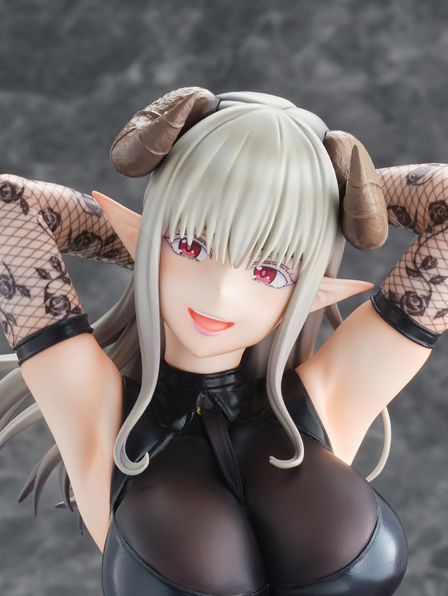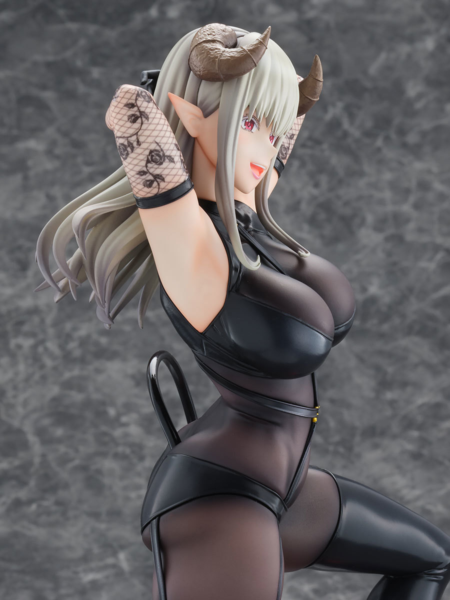 本次採用 1/6 比例立體化、真由羅大人的「拉絲塔洛忒 夢幻服裝」,呈現出雙手挽著長髮、彷彿正在面對鏡頭微笑的火辣姿態,紅色雙瞳的描繪、頭部兩側彎曲犄角的質地、長髮的飄揚動感與色彩漸層都細膩製作,但最大亮點肯定還是那套讓「魔乳」豐滿線條大綻放的夢幻服裝!結合透膚黑色薄紗與皮革材料的套裝、黑色長靴,與拉絲塔洛忒擺出的動作在腰部、臀部、大腿位置形成究極的咬肉感,就連穿戴蕾絲袖套的手臂也形塑出迷人的線條,真的辣到不行。完整公開之後小編只想說一句「放開那張椅子,讓我來!」