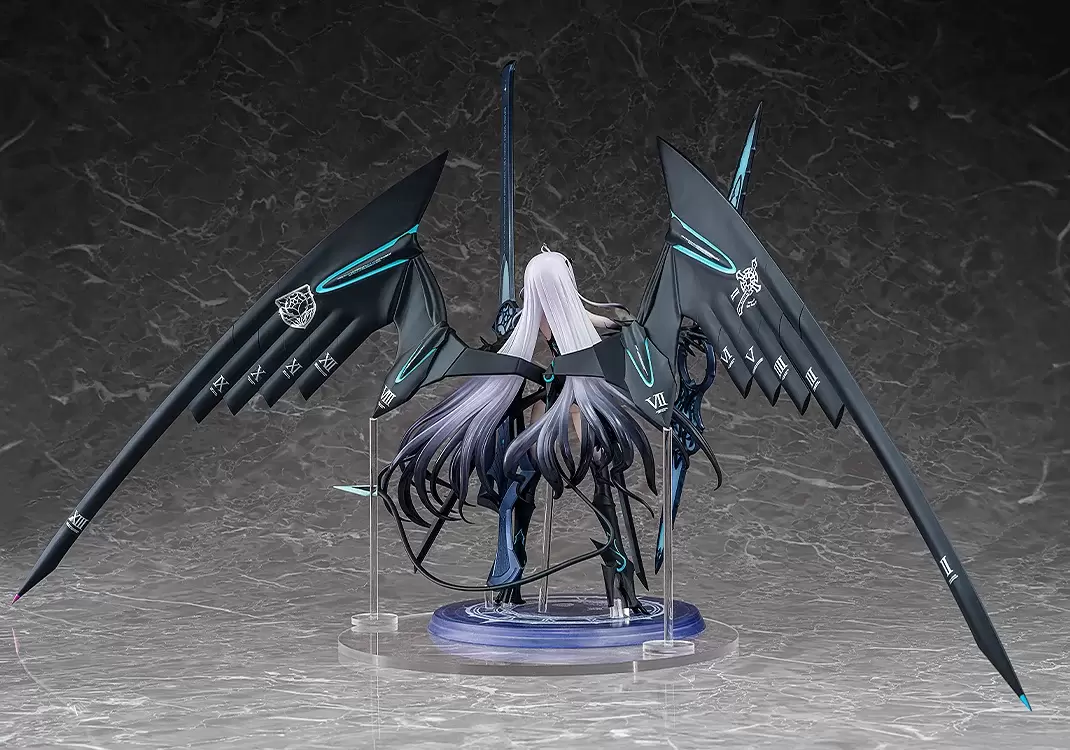 Phat!「Lancer/美露莘」1/7比例模型,還原結合冰冷機械與纖細體態的衝突美感,以第三再臨時嶄露原本姿態、攜帶兩把Tychedight的造型立體化,展開的雙翼更讓尺寸達到 75 公分,營造出令人震撼的規模,堪稱頂級空間殺手!使用透明材質製作出帶有輕透感的紫銀長髮;在蒼白且纖弱嬌小的身軀注入絢麗且奇幻的色彩,呈現出螢光般的視覺效果。堅定的神態,散發強者的從容感!
