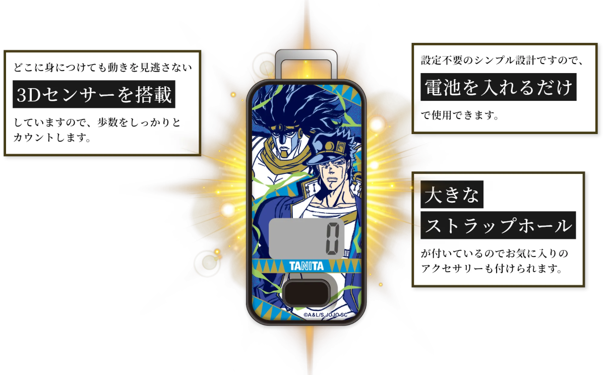 近日 TANITA 宣布將與荒木飛呂彥作品《JOJO的奇妙冒險》合作,推出語音體脂計以及十款 3D 感應計步器,目前已經在 TANITA 官方線上商城開放預購,屬於限量販售。