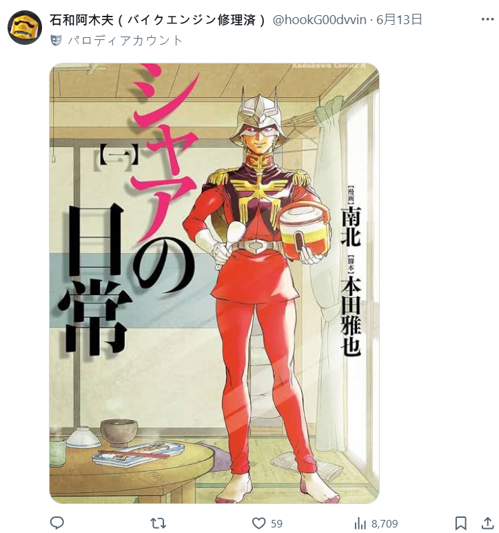 就有網友想起由本田雅也腳本、南北作畫的漫畫『シャアの日常』,也是講述夏亞生活在日常社會中的模樣,幾乎如出一轍。