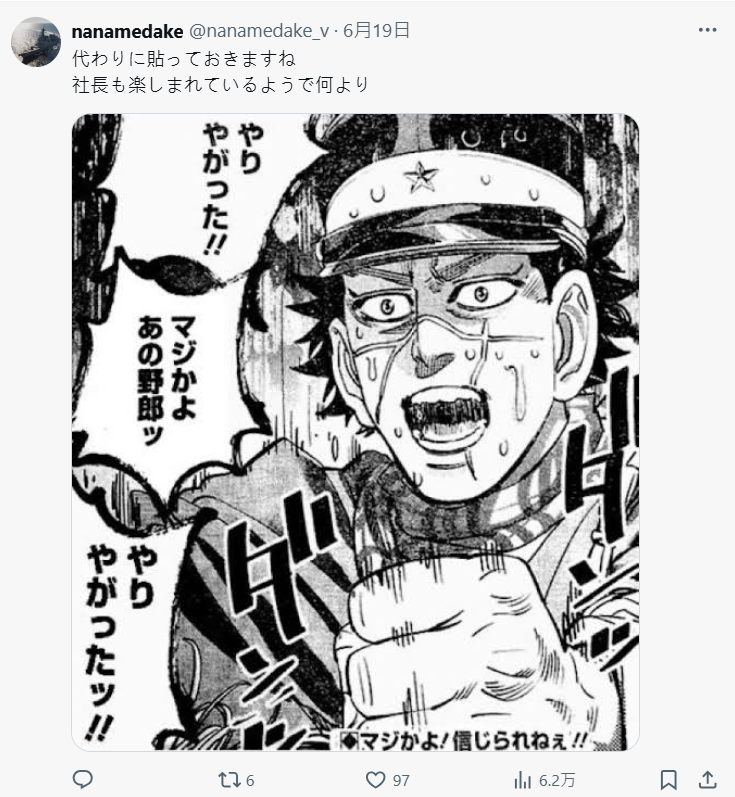 當然「這群傢伙居然真的幹出來了!」這句話,很難不讓人聯想到杉元佐一的經典名場面...www。