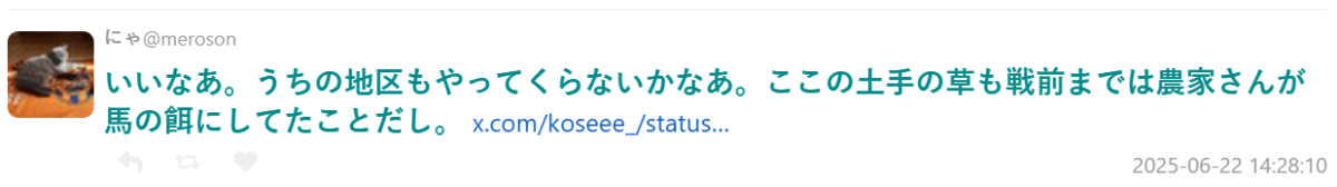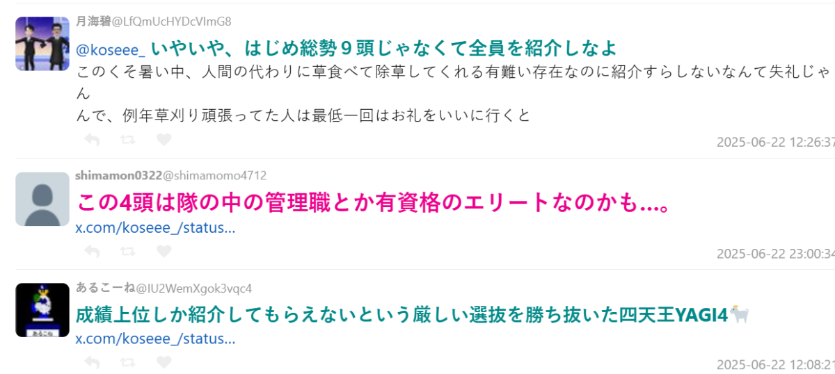以羊的吃草速度,其實當作除草隊也是格外有趣,也難怪「山羊除草隊」在日本 X 上會引起關注。或許如果有哪些需要除草的作業時,也可以請這種最強戰力讓牠們飽餐一頓又可以讓綠地煥然一新吧。