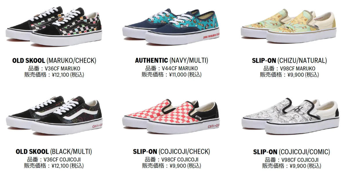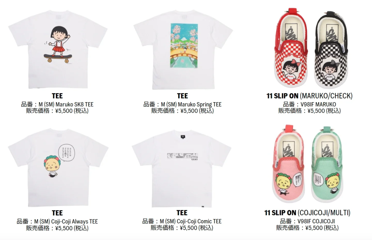 這也是雙方首度聯名,結合櫻桃子(さくら ももこ)的兩部經典作品《櫻桃小丸子》&《可吉可吉》來製作聯名商品,結合可愛的角色插圖跟 VANS 招牌的街頭韻味,打造截然不同的聯名風格。