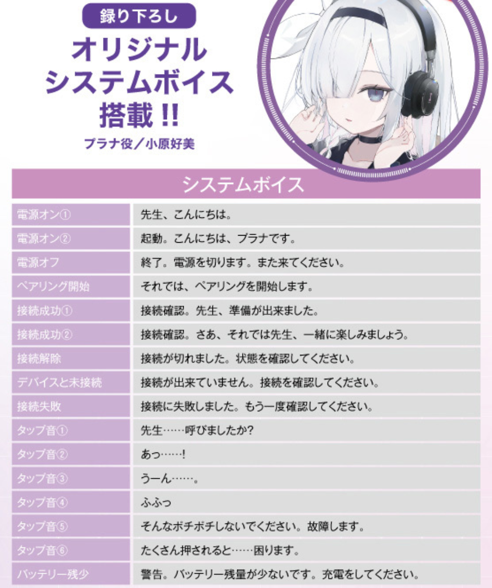 當然這次最吸引人,就是莫過於由星奈 ( CV : 小原好美 ) 錄製的提示語音,使用者可以在耳機聽到星奈跟你各位老師問好,陪伴你聽音樂的時光。