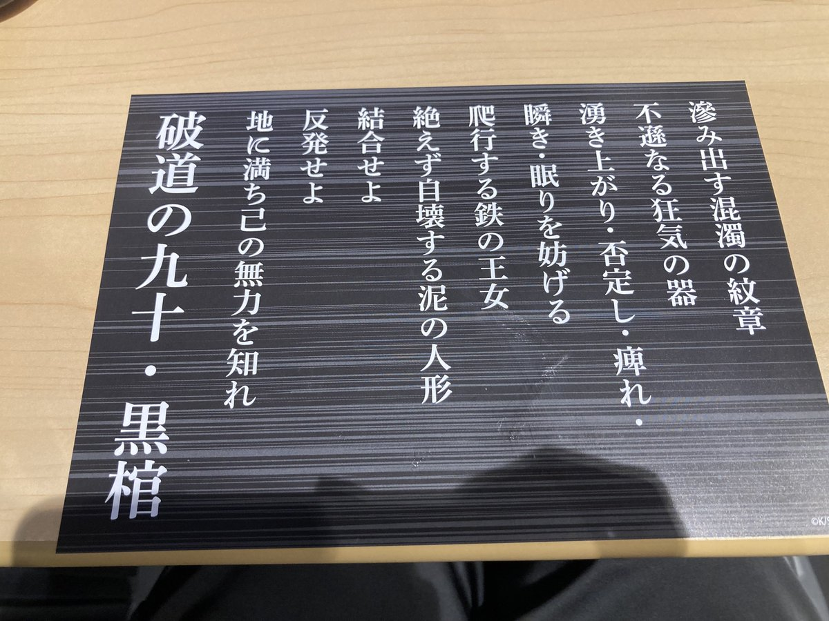 根據現場享用的情況,「黑棺布丁」會放在一張印有完整咒語的紙板上──就像是「完全詠唱布墊」。