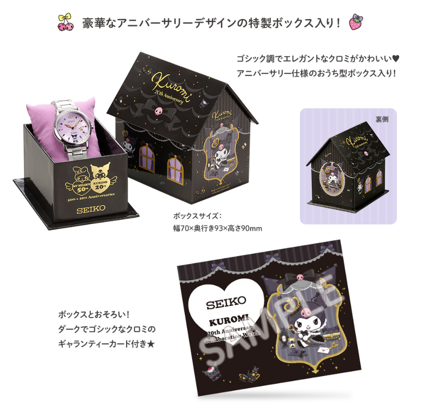 手錶還會附上一個超可愛的「小屋造型收藏盒」,上面是哥德少女風造型的酷洛米,無論是收藏還是直接當裝飾都超可以!並附贈本次聯名繪圖的保證卡。