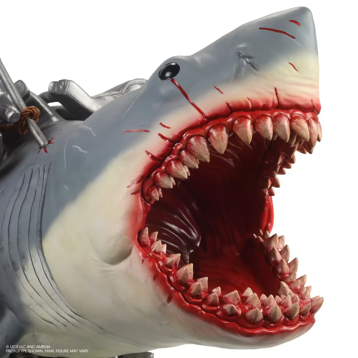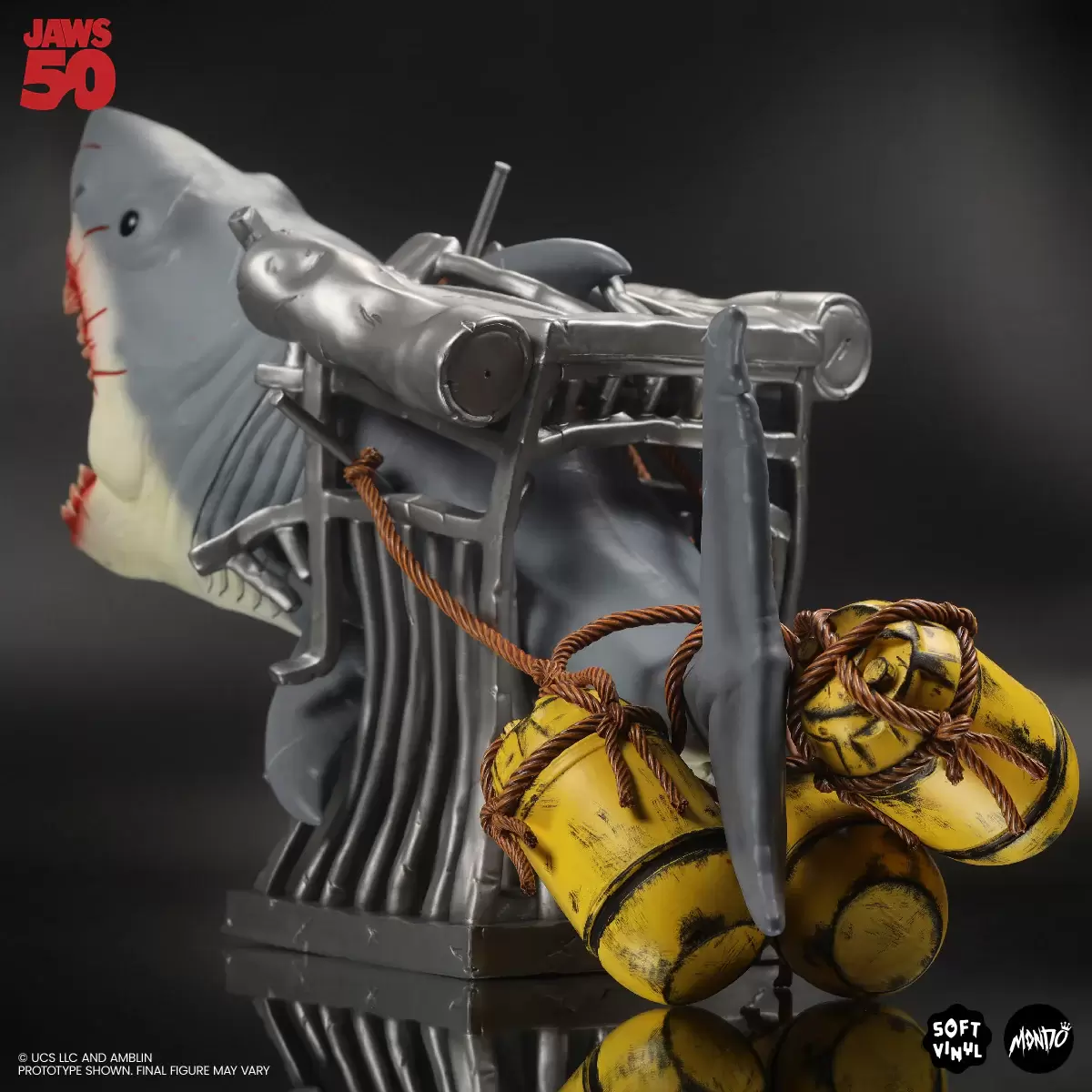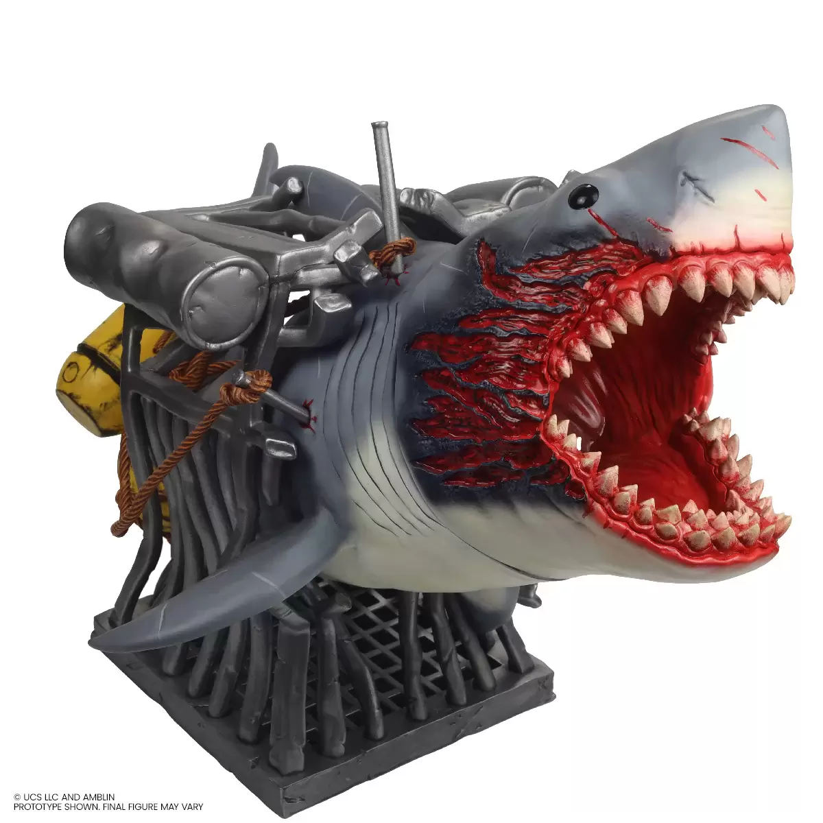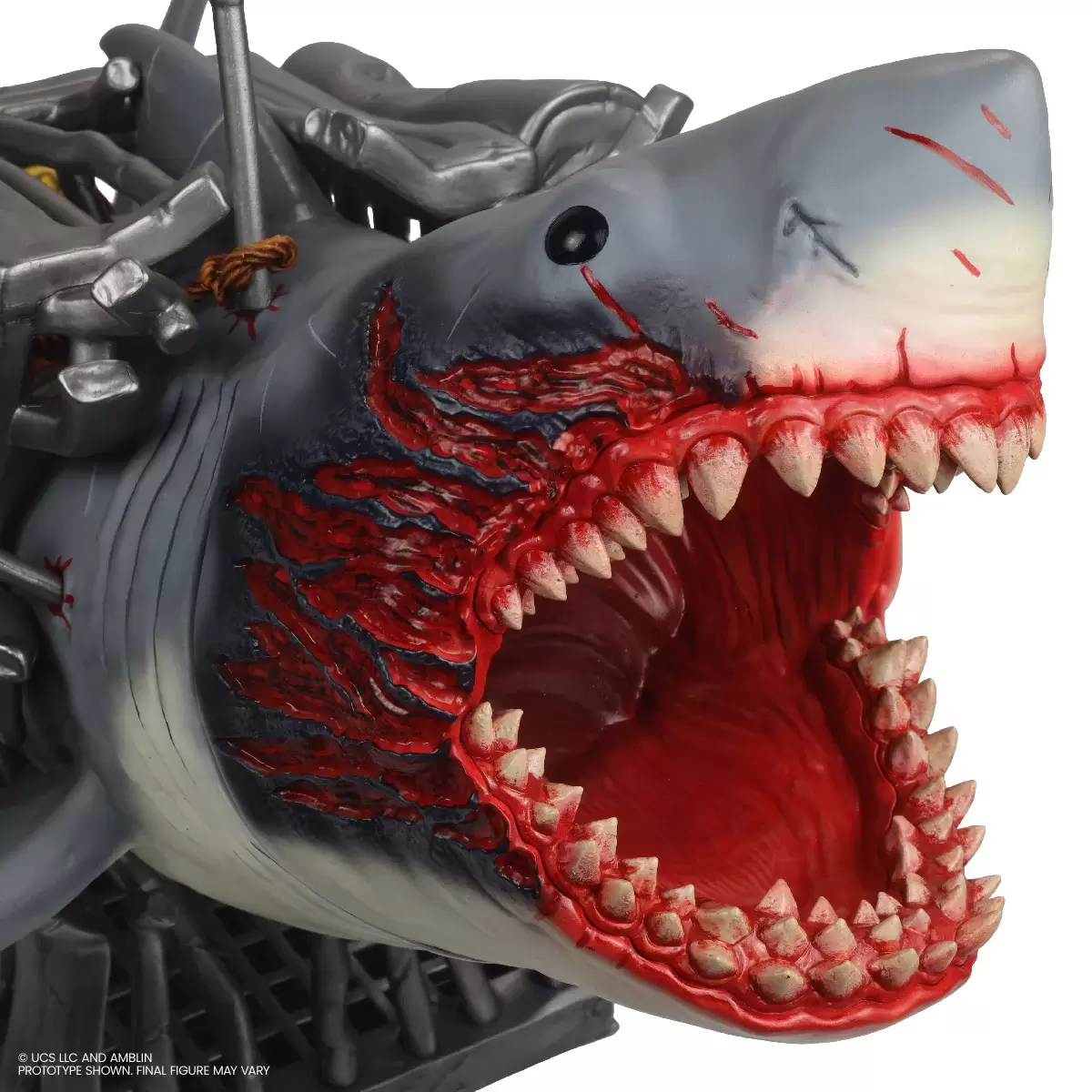 除了大白鯊之外,本作的內容還有一條斷腿、纜線、洩氣的橡皮艇(Deflated Raft)、氣瓶(Scuba Tank)、誘餌(Shark Bait)、漁夫本·加德納(Ben Gardner)的頭顱、被撞爛的鐵籠(Shark Cage),以及根據《大白鯊2:神出鬼沒》(Jaws 2)製作、看起來更加駭人的替換頭雕。不僅展示起來氣勢十足,還能利用零件展現出豐富樣貌,相當誘人。不過因為地區限定販售跟限時販售的緣故,各位玩具人要入手這款 MONDO 發行的大白鯊收藏可能要多花點心思。