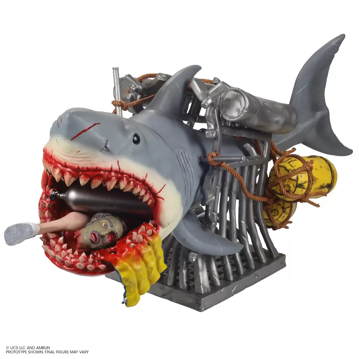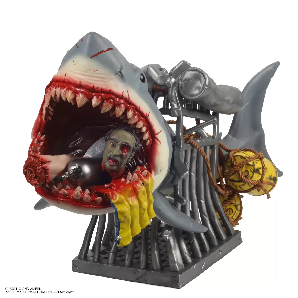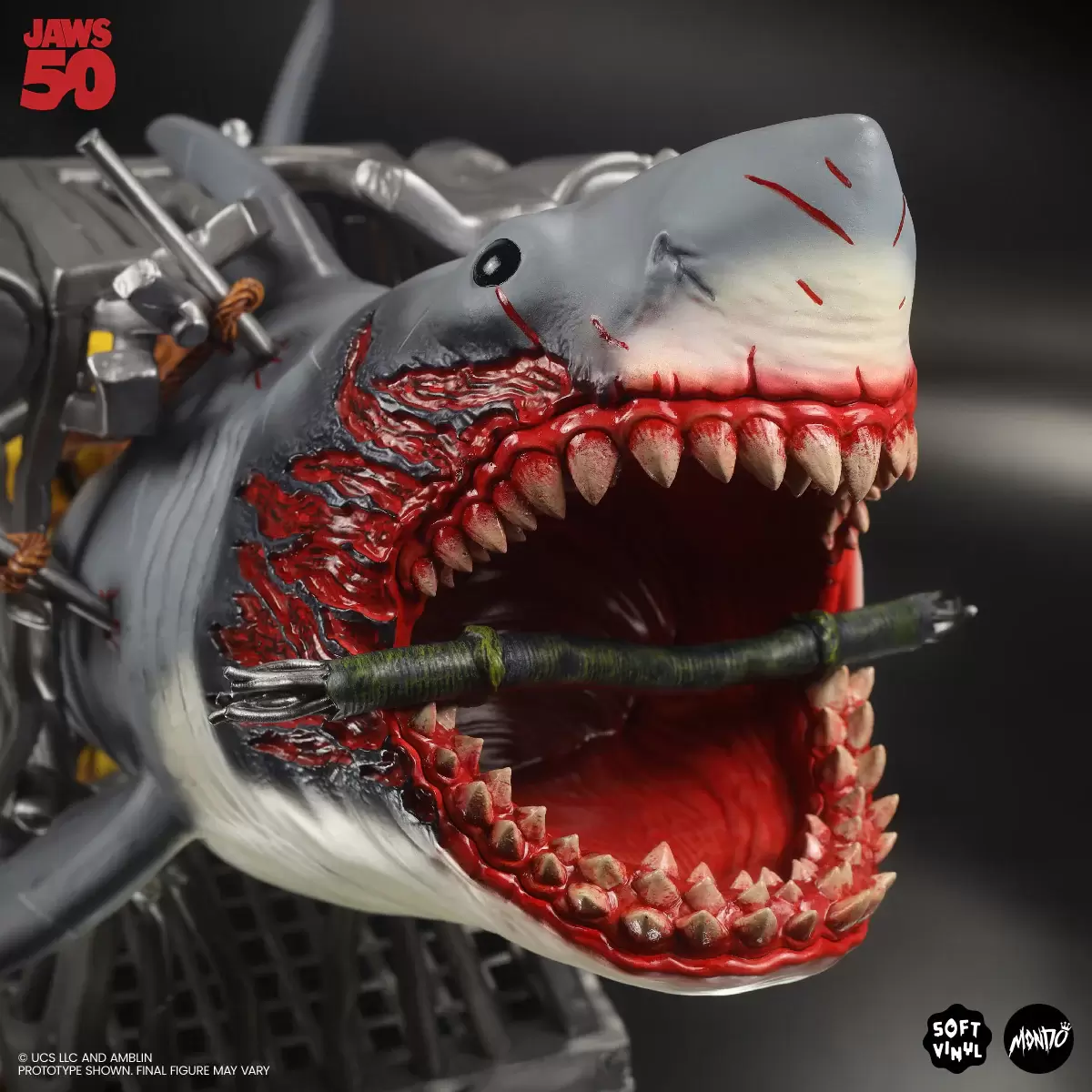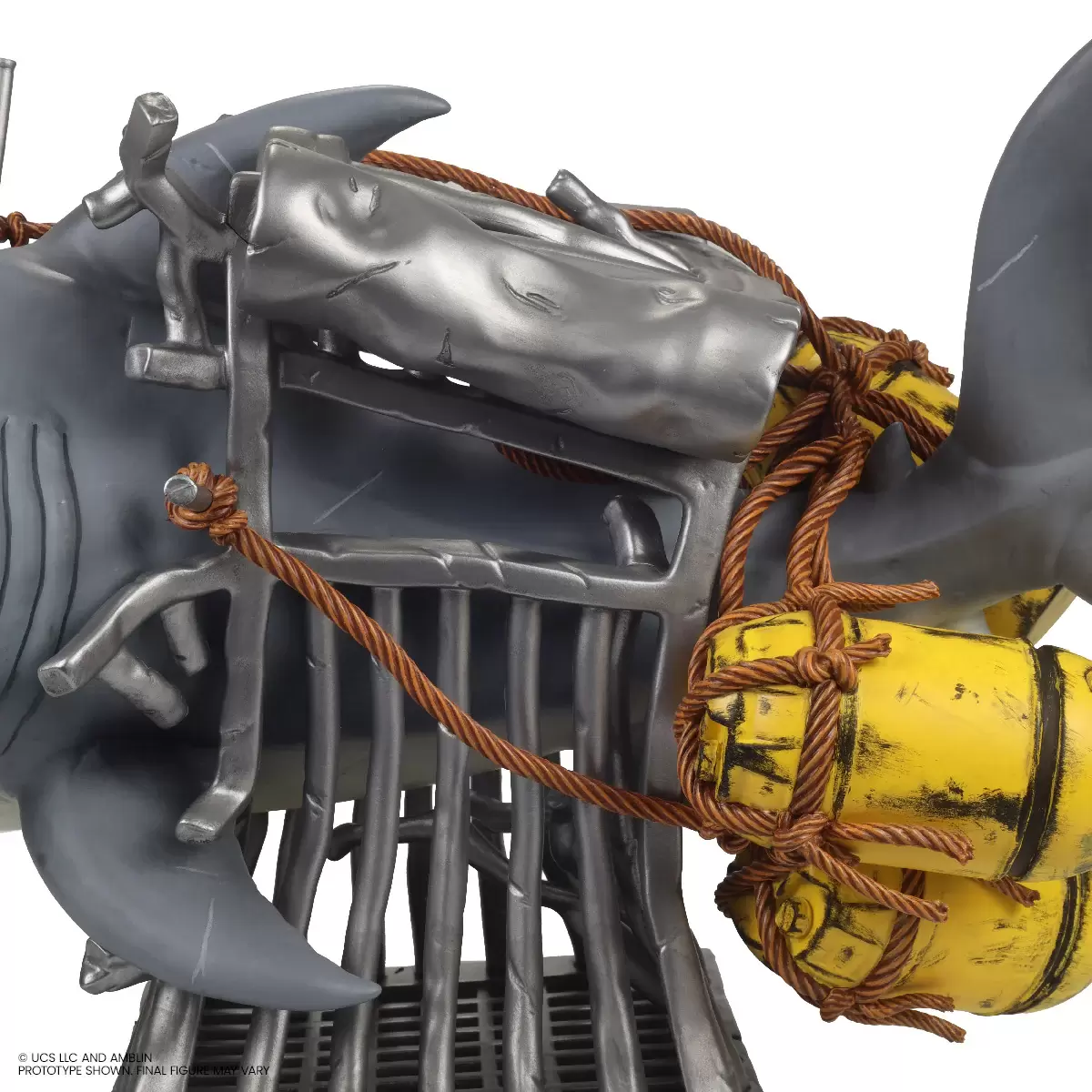 除了大白鯊之外,本作的內容還有一條斷腿、纜線、洩氣的橡皮艇(Deflated Raft)、氣瓶(Scuba Tank)、誘餌(Shark Bait)、漁夫本·加德納(Ben Gardner)的頭顱、被撞爛的鐵籠(Shark Cage),以及根據《大白鯊2:神出鬼沒》(Jaws 2)製作、看起來更加駭人的替換頭雕。不僅展示起來氣勢十足,還能利用零件展現出豐富樣貌,相當誘人。不過因為地區限定販售跟限時販售的緣故,各位玩具人要入手這款 MONDO 發行的大白鯊收藏可能要多花點心思。