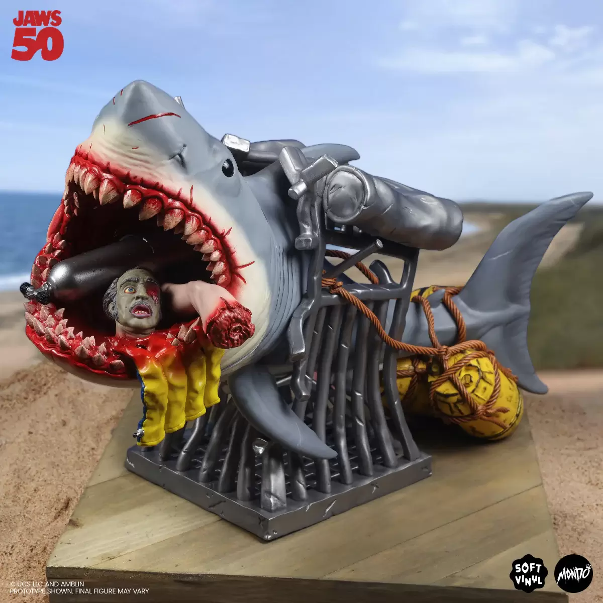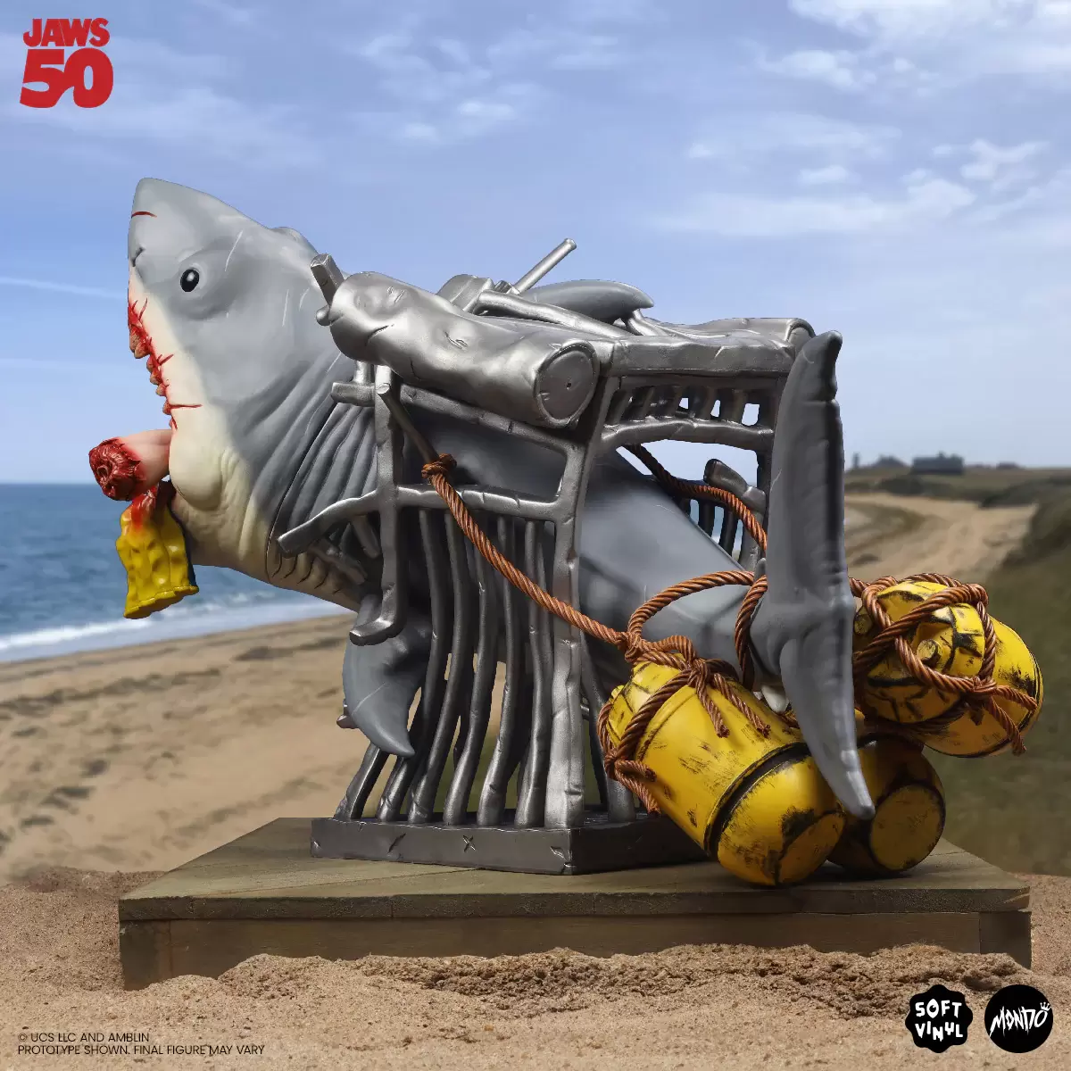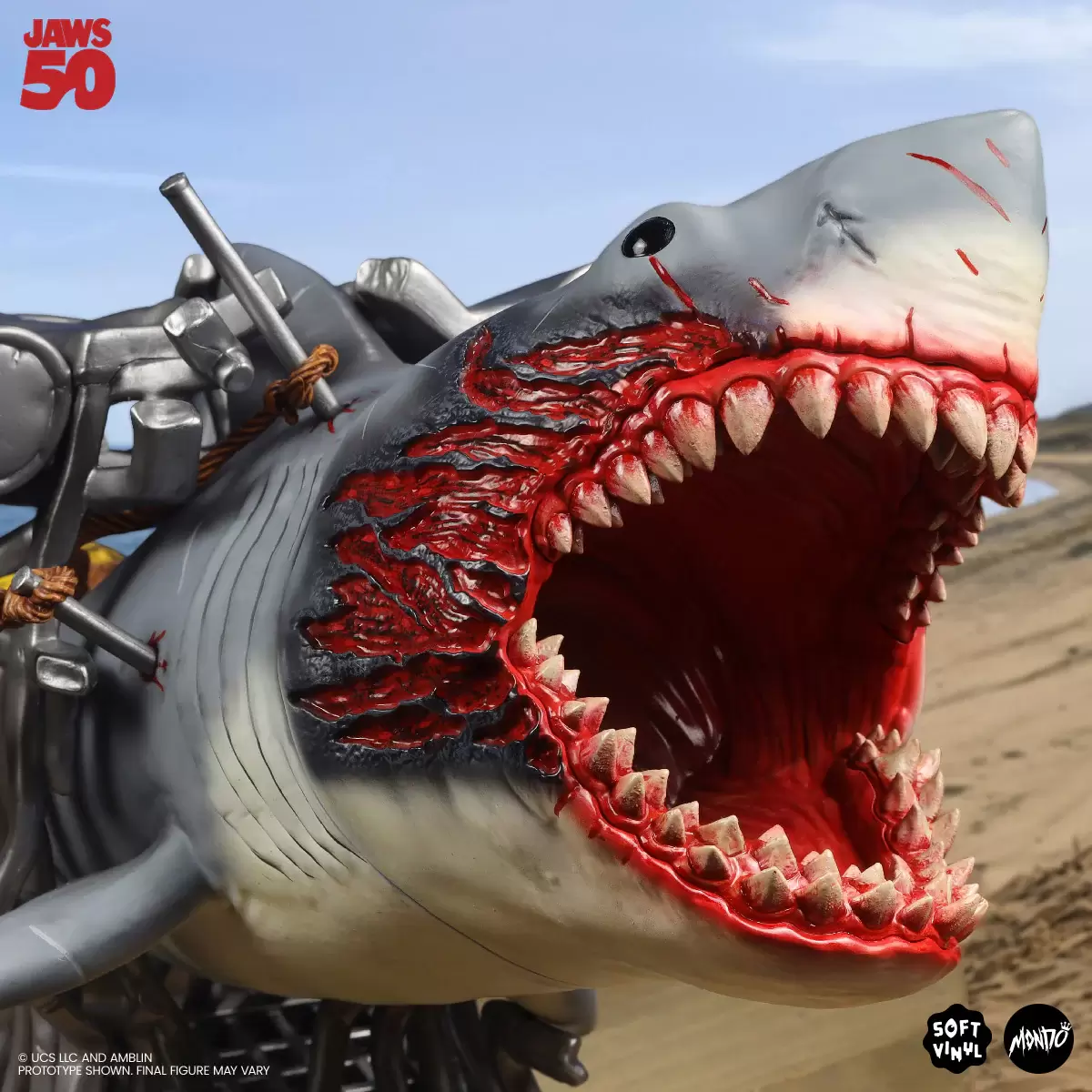 為慶祝史蒂芬·史匹柏執導的美國驚悚電影《大白鯊》(Jaws)迎來五十週年,知名海報設計、玩具公司 MONDO 推出了一系列的《大白鯊》主題作品,本篇將帶來知名藝術家 James Groman 所設計的大白鯊搪膠玩具(Jaws - Vinyl Designer Figure)!現正於 MONDO 官網展開限時訂購(地區限定),建議售價為 275 美金,預計 2025 年 12 月開始發貨。