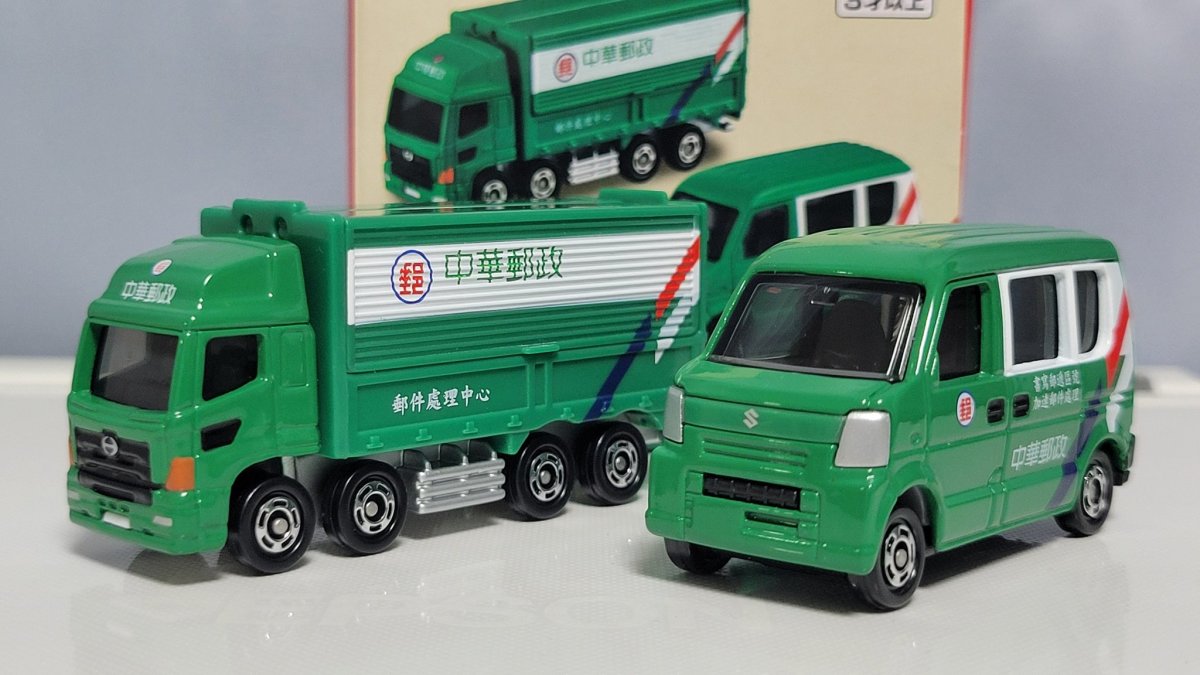 ▼2020年於「TOMICA小汽車50週年博覽會」限定販售的『中華郵政 郵務車原創組』包含兩輛郵務車,忠實還原了特徵的綠、白色塗裝與中華郵政等車身字樣與圖案,貨櫃兩側、後車門還具備展開機構。