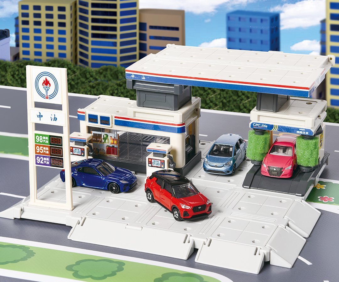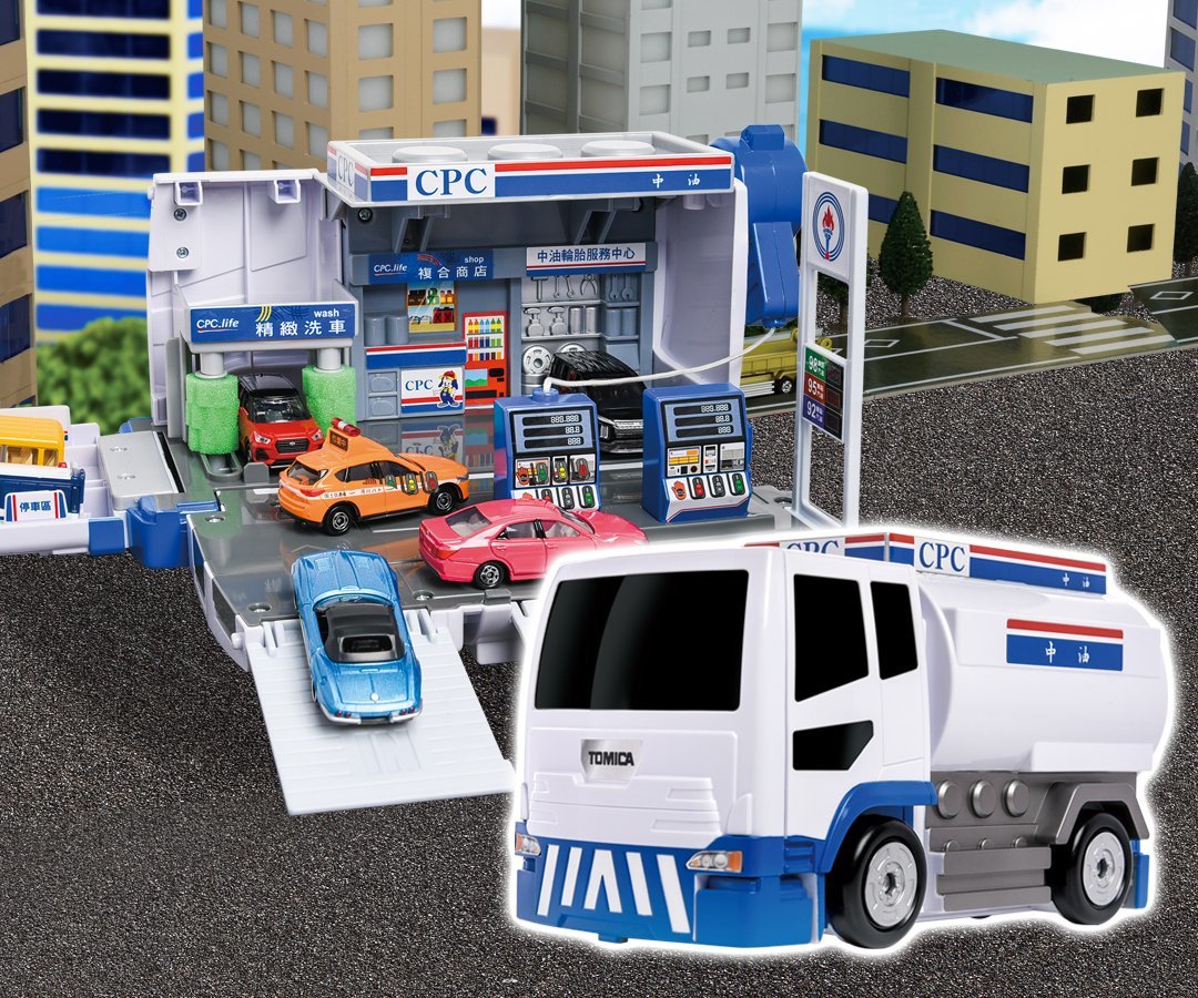 ▼2023年伴隨「TOMICA小汽車全台巡迴展」推出的『台灣中油 油罐車、加油站場景組、變形加油車』帶來更豐富的玩法,還原了加油站內的加油島、快保中心、洗車機等場景,並具備實際可玩的機構,巨大的變形加油車更能變形為功能齊全的移動加油站!