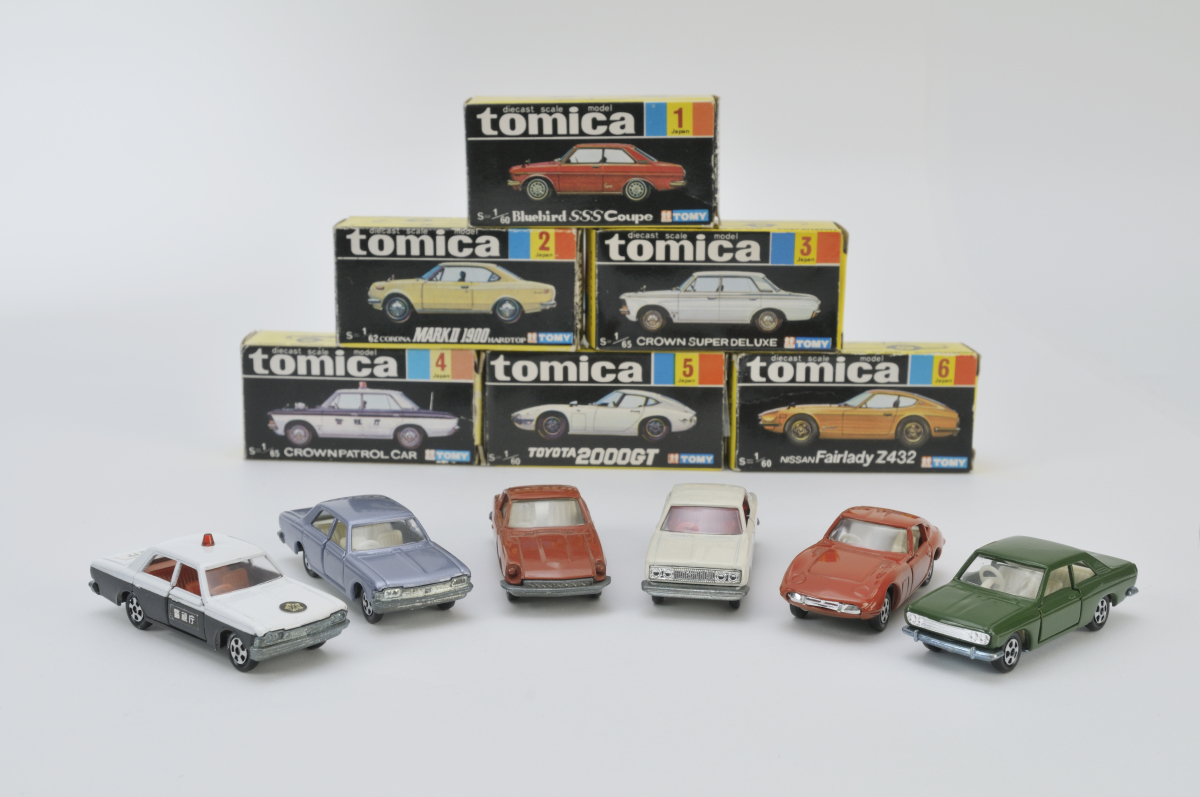 『TOMICA』小汽車首彈商品於 1970 年 08 月 18 日發售,共推出 Nissan Bluebird SSS Coupe、Toyota Corona MARK II、Toyota Crown Super Deluxe、Toyota Crown 警用巡邏車、Toyota 2000GT、Nissan Fairlady Z 等六款日本國產車種。每款售價 180 日圓在當時算是相當親民的價格,加上出色的造型、質感讓『TOMICA』小汽車瞬間就成為超熱銷的人氣玩具。