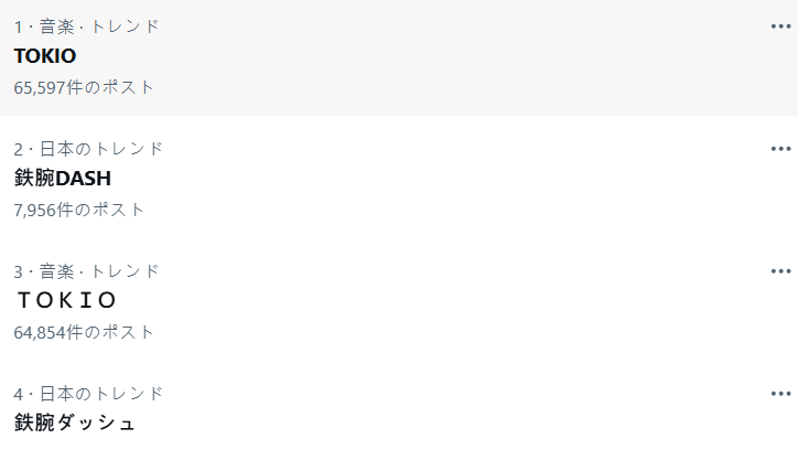 ▼ 很快 TOKIO 也成為 X 趨勢關鍵字熱搜首位