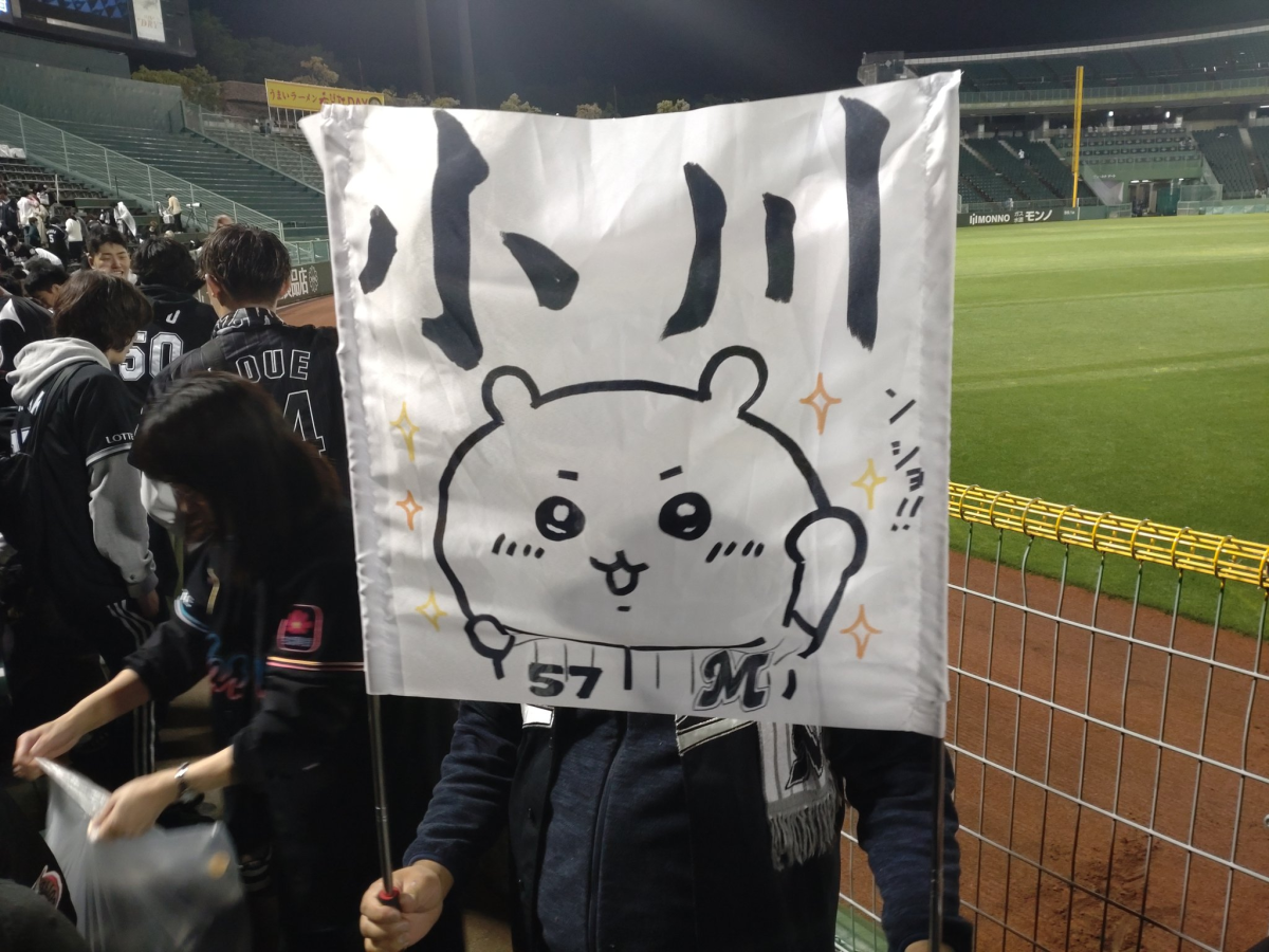 ▼ 可以看到球迷球場應援小川龍成,也是拿出吉伊的圖 XD。