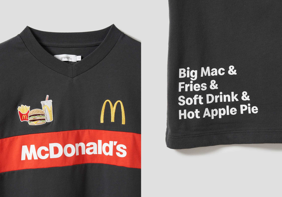 這次聯名同樣以麥當勞自家的 Logo、餐點以及食物包裝為特色打造主題服飾服裝作為出發點,推出一系列的服飾商品,趣味性十足,不過穿出去是否會當作麥當勞員工就...不得而知了 XD。