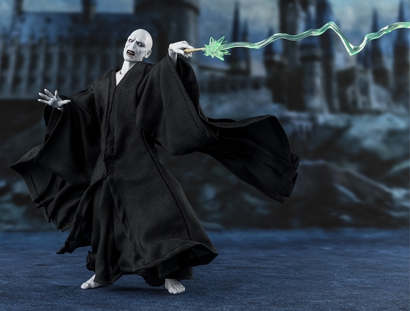 本次的佛地魔可動人偶高約 15 公分,採用「魂之數位上色」技術還原演員雷夫·范恩斯(Ralph Fiennes)經過特效改造後的五官造型,雕刻出他消瘦的臉頰與充滿骨感的手掌紋路,並上色再現充滿牙垢的牙齒及暗沈的眼窩,服裝以黑色布料剪裁還原,並在袖子與衣襬邊緣藏有鐵絲,可以依據需求調整動態!