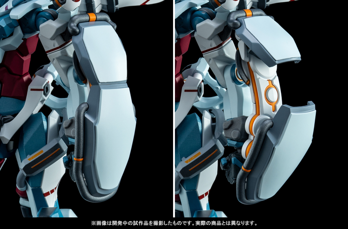 武裝配件包含專用台座、留之助熱能斧、光束步槍、盾牌、光束軍刀等,其中盾牌還再現了機械設定中的展開機構。這次情報更進一步展出先前未公開的頭部替換零件、特效零件,能夠再現劇末決戰時為解放「沙侖的玫瑰」中的拉拉而啟動、四肢發出光芒的『恩底彌翁裝置覺醒』姿態。