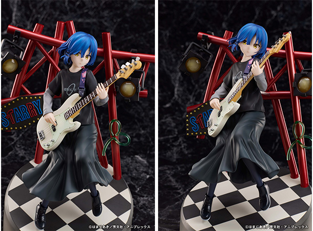 本次的山田涼 1/7 比例塗裝完成品高約 23.5 公分,與先前的小孤獨一樣採用的是動畫第 8 集中團結 Band 首次在 STARRY 演出的造型,雕刻還原長裙的皺摺與上身團結 Band 團 T 的 logo 字樣,可以從飄逸的藍色短髮瀏海縫隙窺視她冷酷的眼神,並再現懷中貝斯的造型細節!