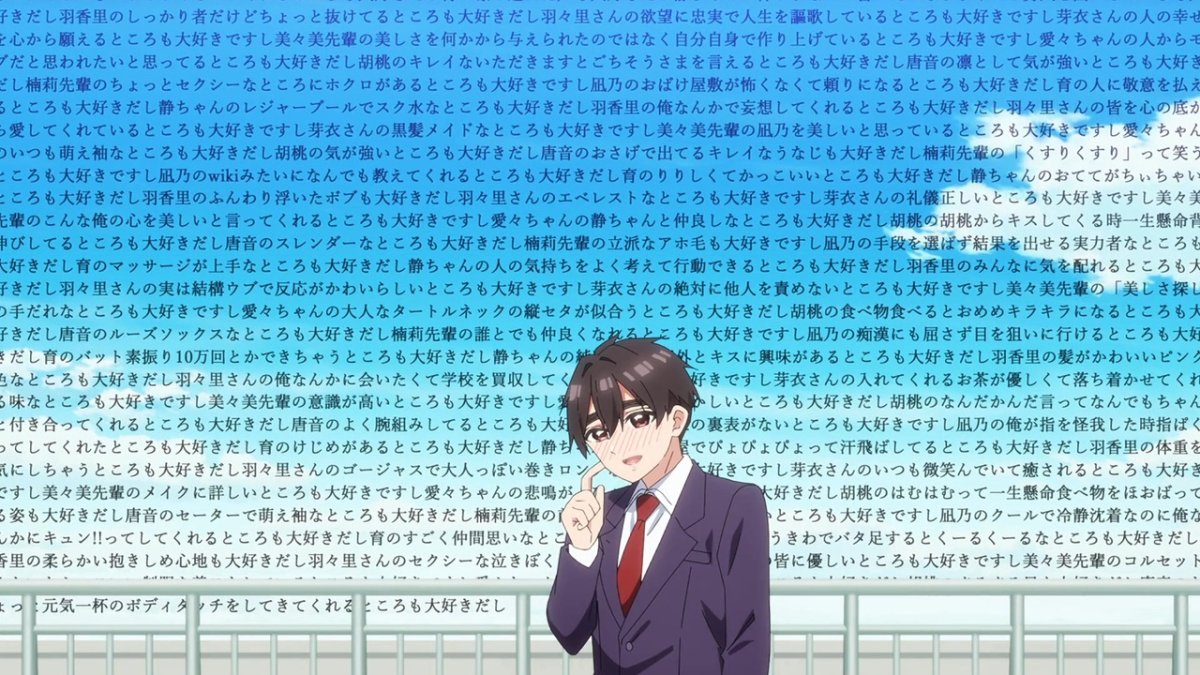 而動畫這段「愛的演說」出現在第24集(也就是第二季最終回),劇情是戀太郎對著每一位女朋友,滿懷深情地說出他喜歡她們的每一個地方,是整部作品中極具代表性的名場面之一。動畫製作團隊以動畫特有的方式將原作中的人氣橋段完整呈現,也因此創下了這項驚人的紀錄。