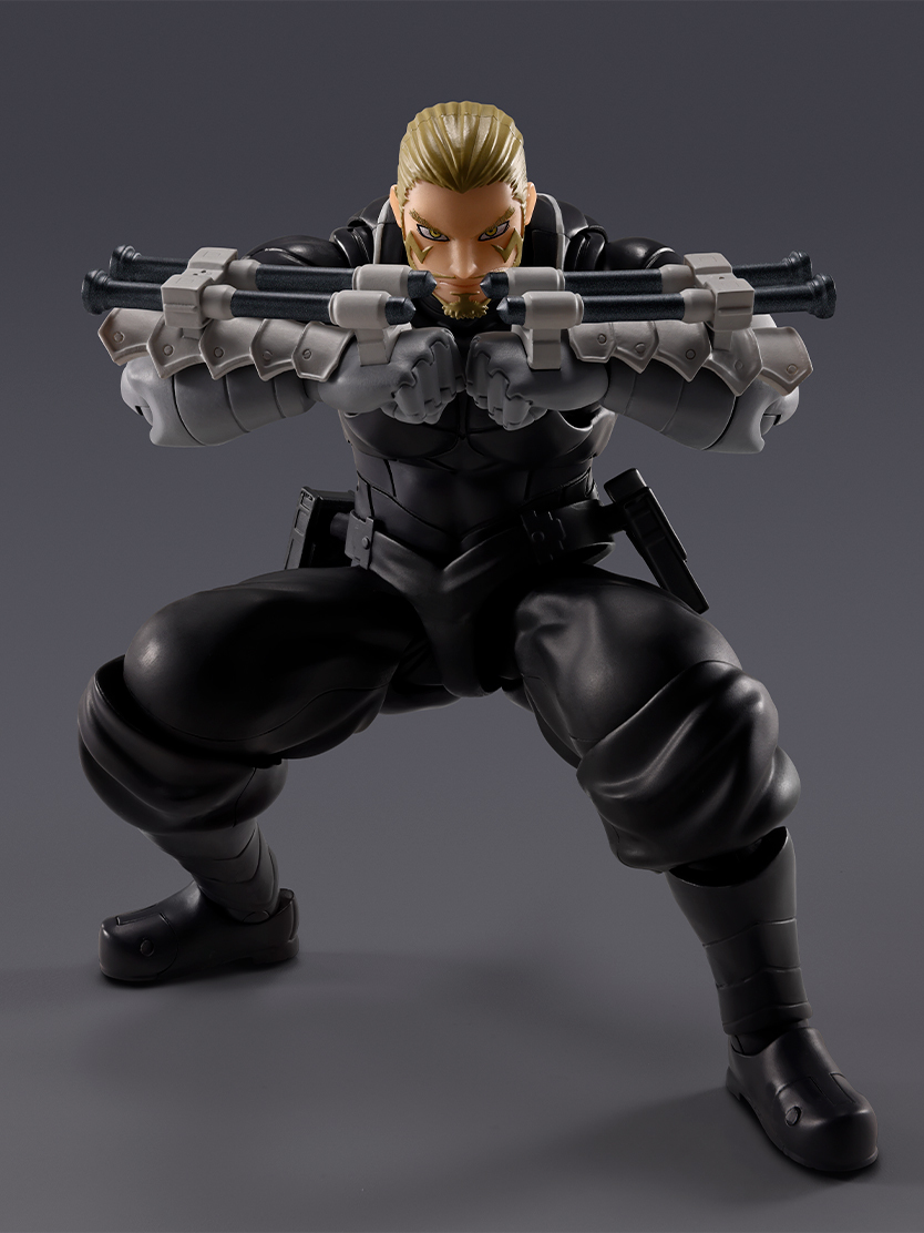本次的 S.H.Figuarts 四之宮功高約 17 公分,有著僅次於系列兩隻怪獸的尺寸,還原他獨特的出雲科技戰服造型,雕刻呈現出戰衣寬鬆褲子上的皺摺與他無比精實的上身肌肉線條,臉上閃電狀的鬍子與堅毅的眼神也忠實再現!而最大的看點絕對是手上以怪獸 2 號改造的專用兵器,精緻再現鎧甲上的造型細節,可以搭配配件收錄的手部、表情替換件以及靈活可動再現各種帥氣的戰鬥姿態!