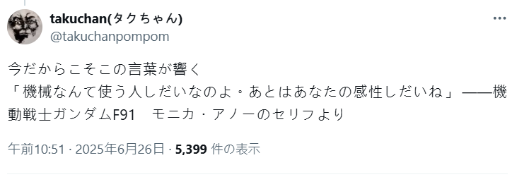 如同一位網友引用《機動戰士鋼彈F91》的台詞所說:「機器怎麼用是看人,最後還是要靠你的感性。」