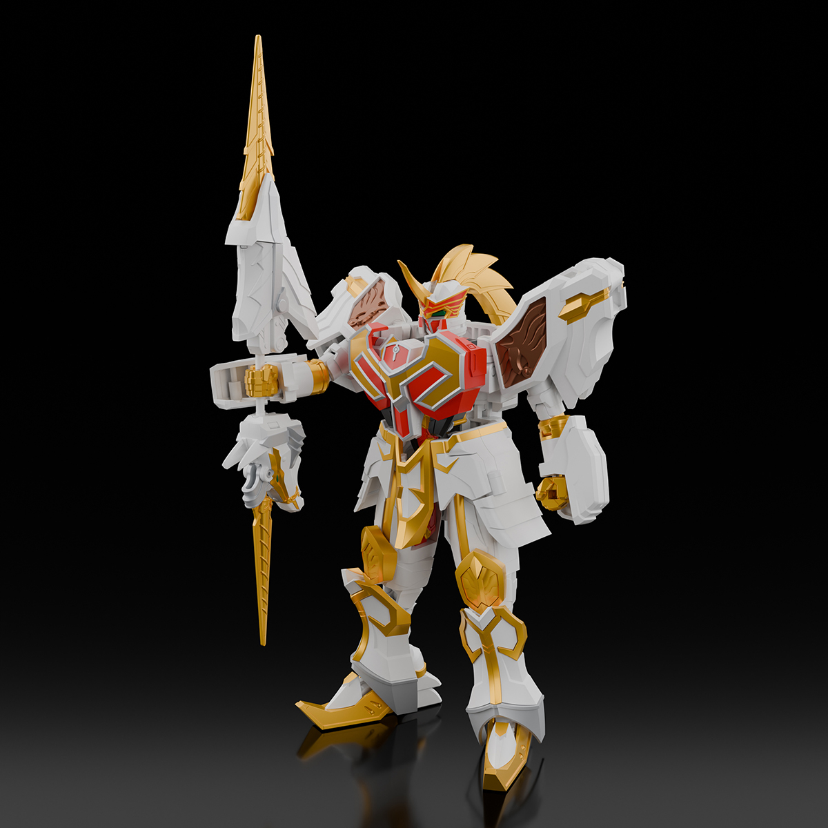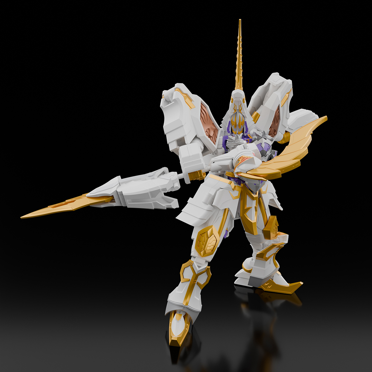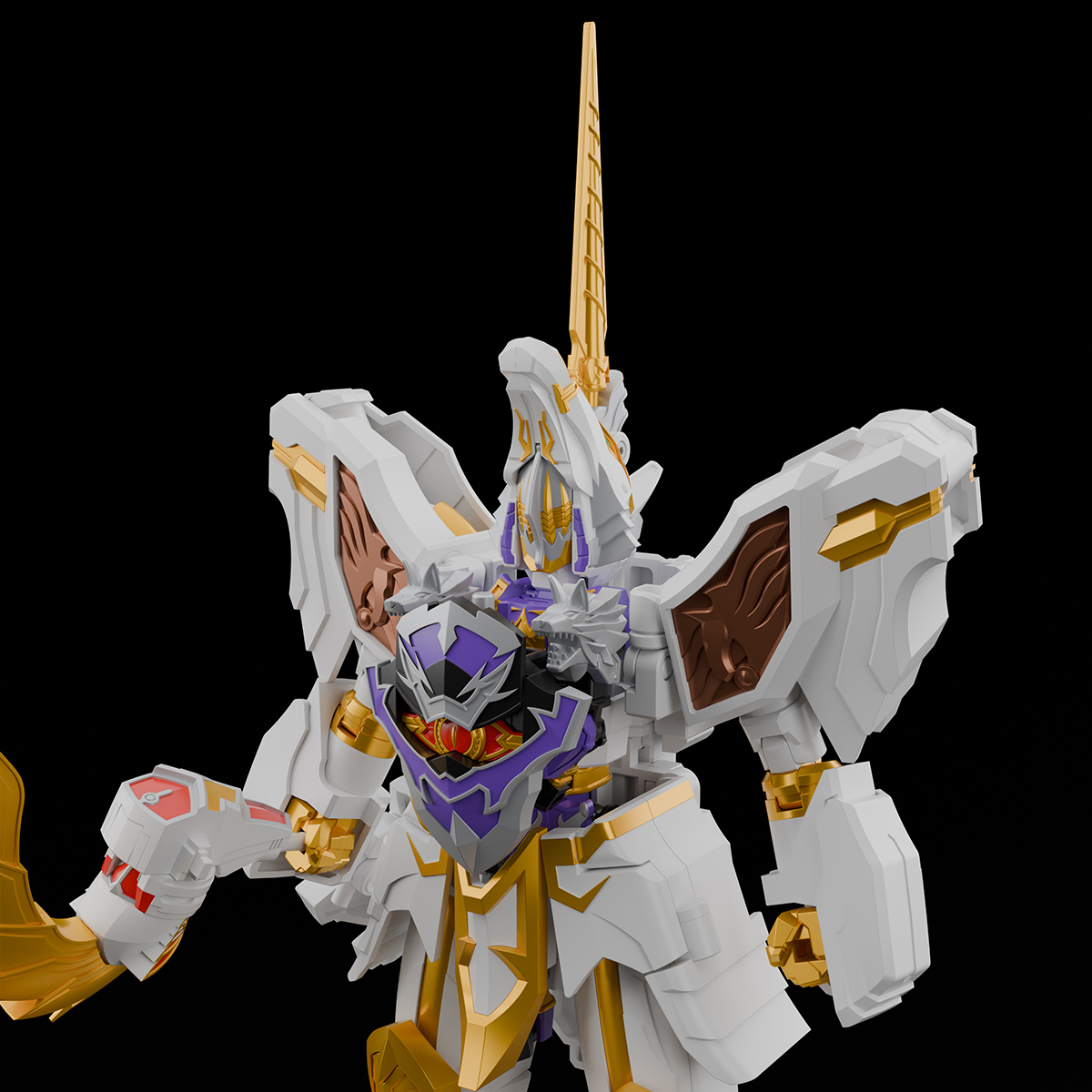 此次推出的第三彈機體神聖凱薩是認可魔法紅的勇氣並賜予其力量的「獨角聖馬尤尼肯恩」與魔法紅變化的「神聖魔法鳳凰」天空合體而成的幻之魔神。套件運用過去推出的「魔法鳳凰」、「魔導馬 巴力基翁」修改而來,運用新規成型色、新規零件再現「神聖魔法鳳凰」的金色部位,以及獨角聖馬相異的頭部、尾部造型。