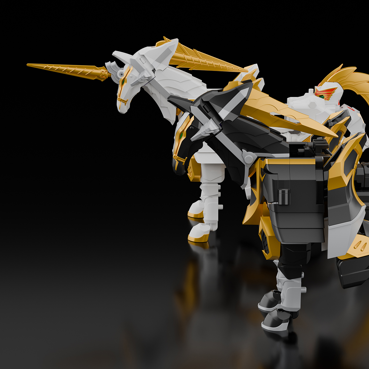 獨角聖馬尤尼肯恩也重現了 DX 版極具份量的帥氣造型,前腿部分新增可動關節,能夠把玩出前腳彎曲、奮力奔馳的姿勢。除了能夠讓神聖魔法鳳凰騎乘在背部外,更具備變形合體機構能再現人馬一體的「神聖半人馬形態」、巨大魔神「神聖凱薩形態」。