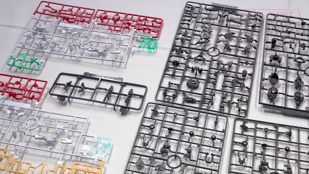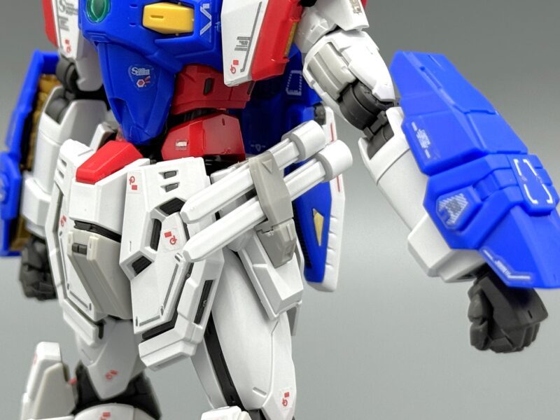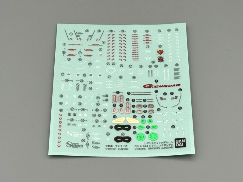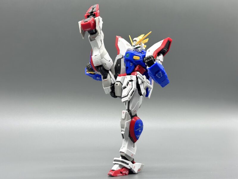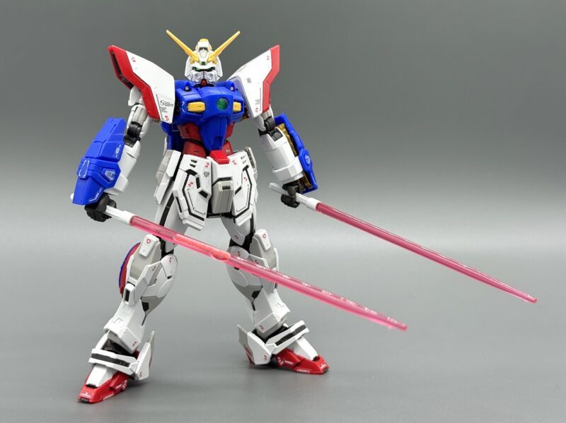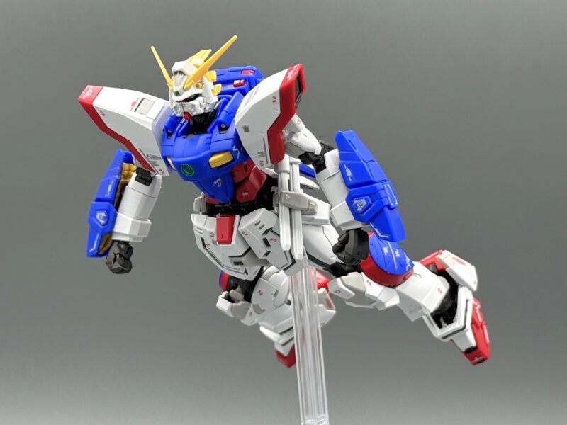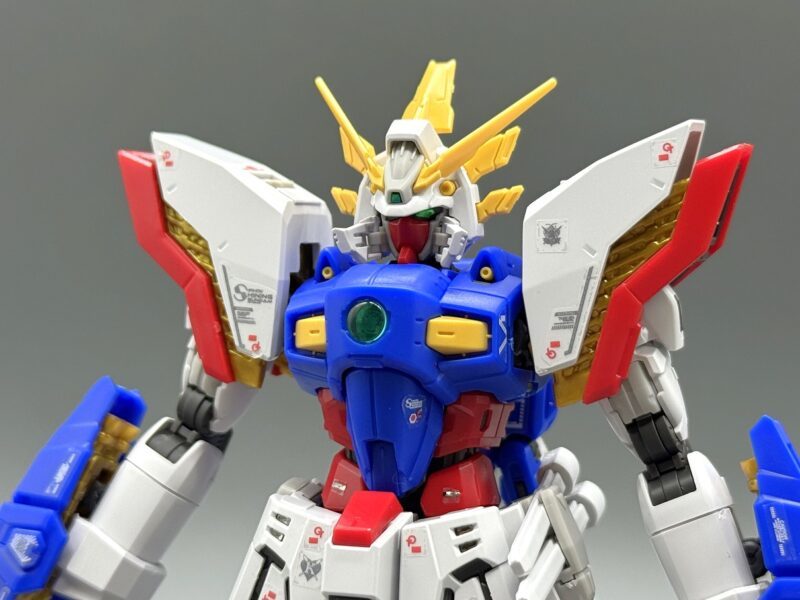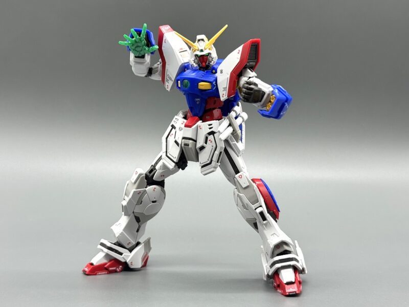『RG 1/144 閃光鋼彈』套件運用白、灰、深灰、紅、深藍、黃、金、金屬綠...等豐富零件成型色製作,其中金色零件採用近年新技術「擬真金屬質感光澤成形」製作,呈現更加真實的金屬光澤,而再現必殺技「閃光掌」的綠色手掌零件也同樣採用該技術呈現。此外還能運用 RG 系列特色的「擬真質感貼紙」製雙眼、胸口等發光部位和機身標誌。