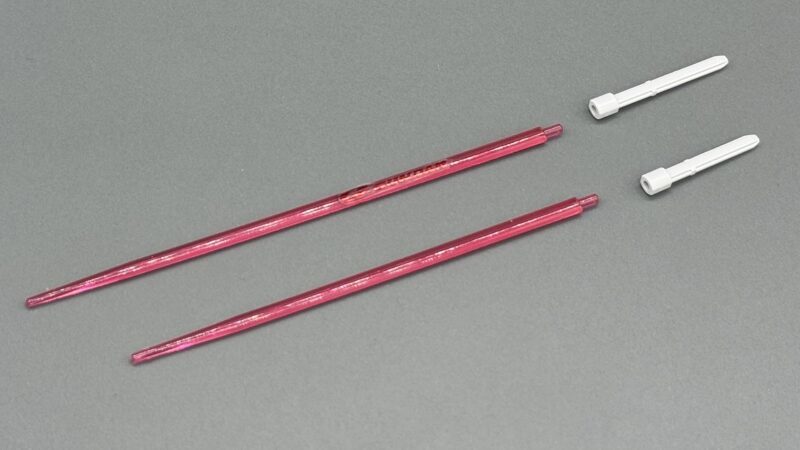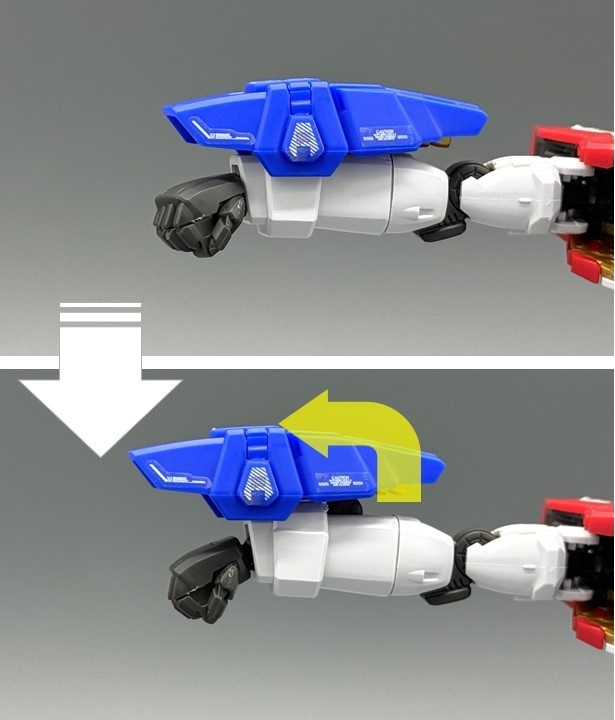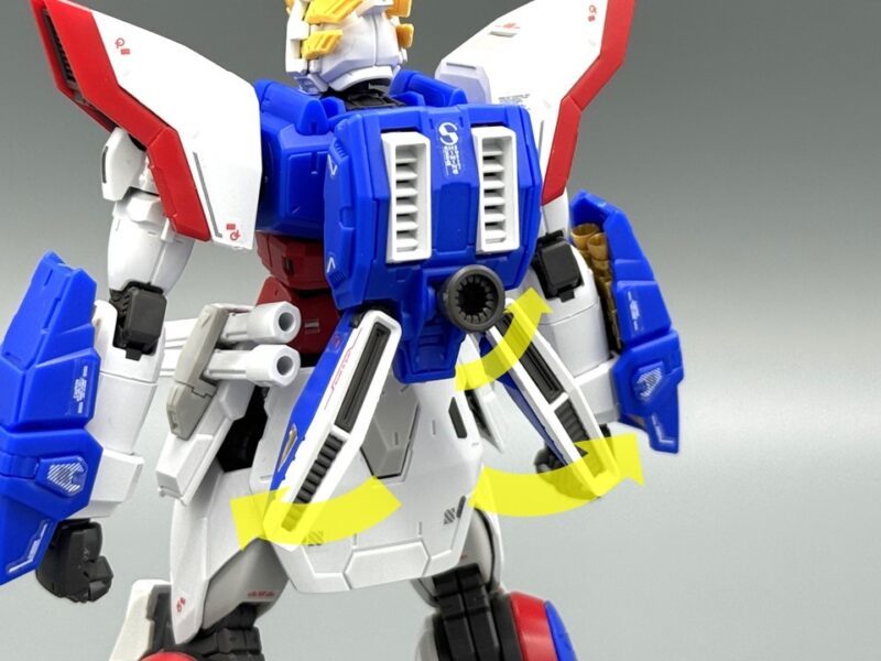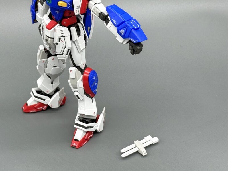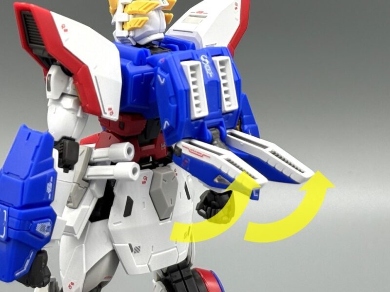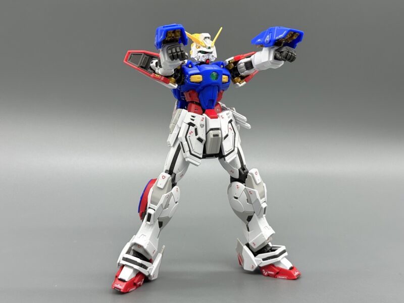 在武裝配件部分,具備駕駛艙、逃生艙、交通工具、推進器等功能的「核心飛車」擁有細節分色,並再現了駕駛艙蓋展開、推進器可動以及與閃光鋼彈本體合體的機構。前腕部裝甲可向前方展開,再現內藏光束砲的發射狀態。平時收納左腰部的光束劍有長、短兩種劍柄,劍身特效更能貼上「G.GUNDAM」字樣再現 OP 動畫中的場景。