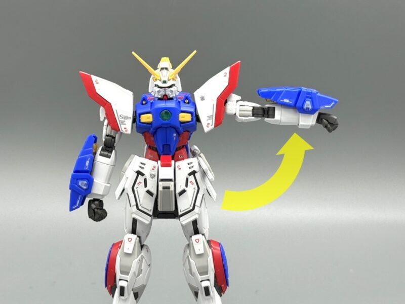 『RG 1/144 閃光鋼彈』最大的特徵就是無需替換零件的完全變形機構,藉由細膩的可動分割能將全身多處的裝甲展開,能夠再現臉部、腕部裝甲展開並使用必殺技閃光掌的「戰鬥模式」,以及加上肩部、腿部...等多處裝甲展開,露出金色內構的「超級模式」。