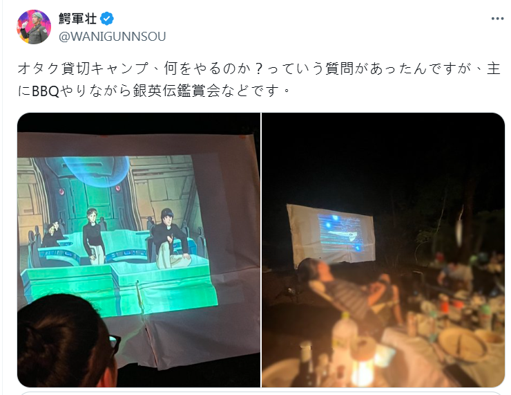 現場活動內容也別具風格,除了烤肉BBQ,還有《銀河英雄傳說》觀賞會,網友表示:「這組合也太搭了吧,邊吃肉邊看萊因哈特登場簡直完美」,,整體氛圍又中二又歡樂。。