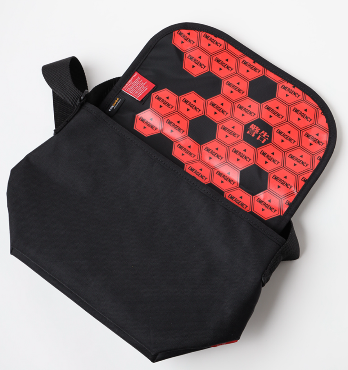 這次聯名對象是來自紐約的知名包包品牌「Manhattan Portage」!以他們超人氣的郵差包為基礎設計,包包翻蓋上大膽印上初號機的圖案,翻蓋內側也細心印上粉絲熟悉的「緊急警告」的圖示,細節滿滿,整體設計充滿 EVA 的世界觀。