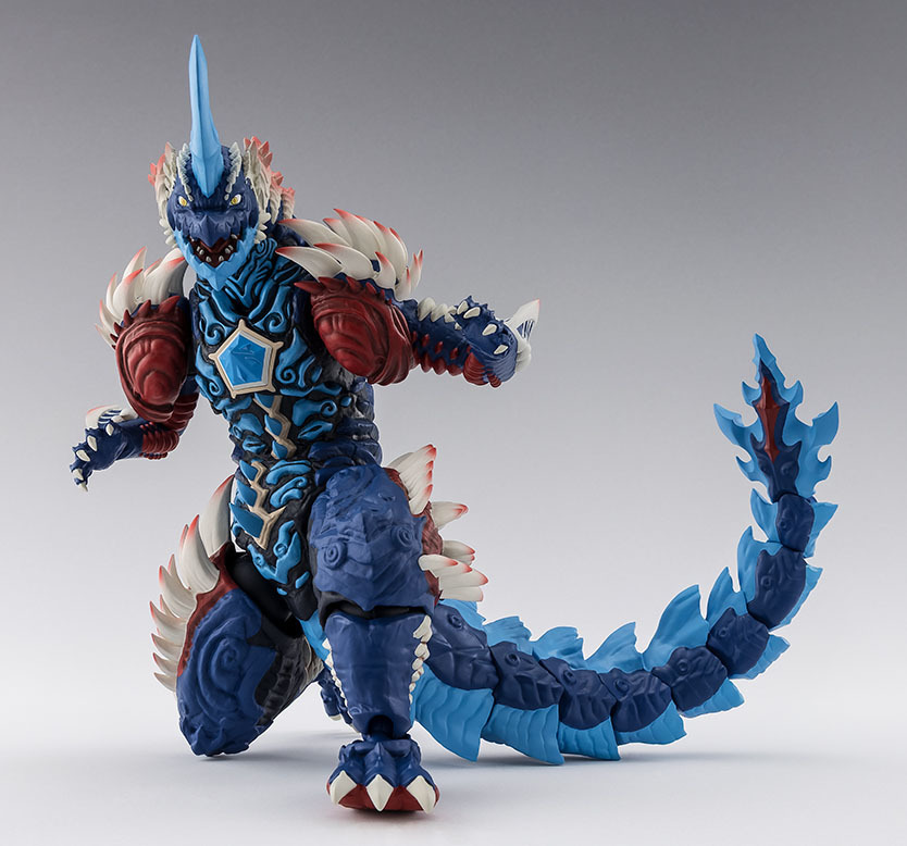 「S.H.Figuarts 雷基尼斯」由圓谷製作造型部門 LSS 徹底監修,使用劇中戲服 3D 掃描後的數位原型製作而成,還原特徵的體表浪花紋路、全身高密度的刺棘,並施以豐富塗裝再現藍黑色身軀、刺棘尖端的紅色漸層。