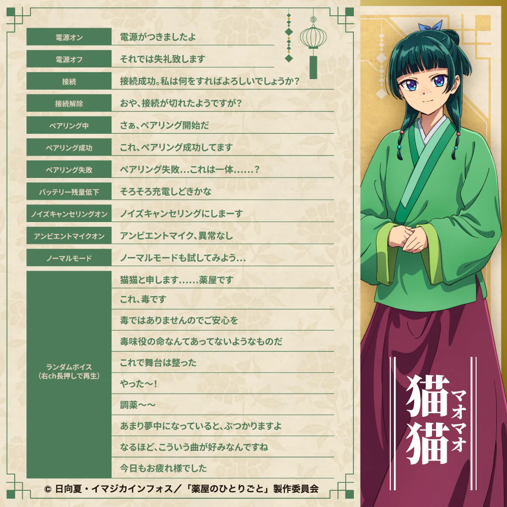 近日宣布與日本耳機品牌「AVIOT」合作,推出特別款「TE-Q3-KSR」聯名藍牙耳機。收錄全新錄製的貓貓和壬氏的語音,甚至還有雙人組合的語音可選擇。售價為 22,880 日圓,目前已開放預購。