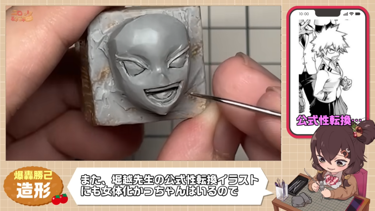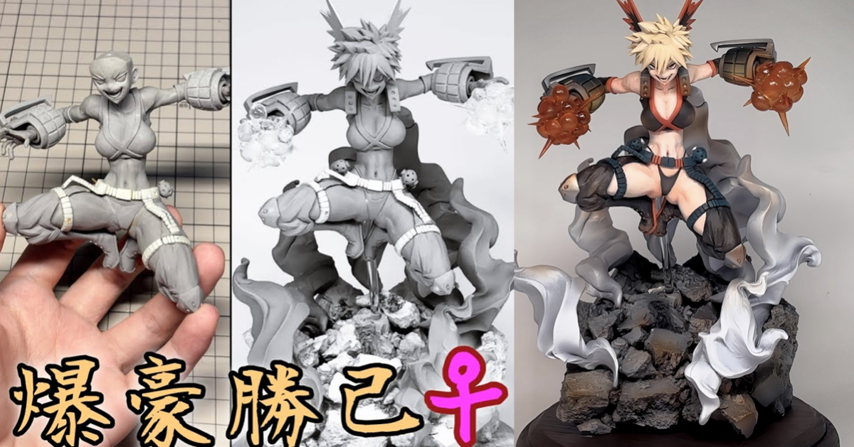 近日他也公開新作品,延續先前的《我的英雄學院》黑霧「女體化」黏土人像,這次改為主角群的人氣角色「爆豪勝己」的女體化黏土人像,精湛的手藝與造型發想再次讓網友大為讚嘆。