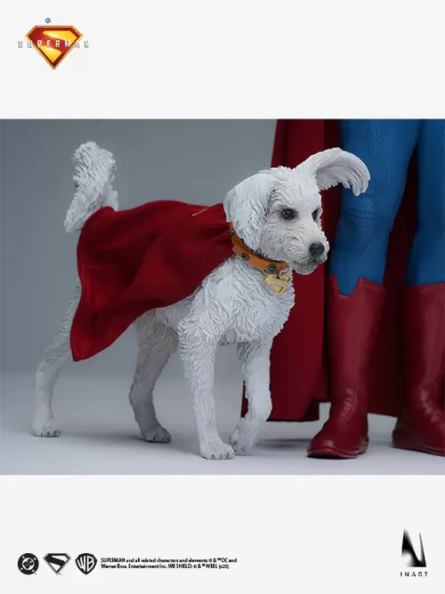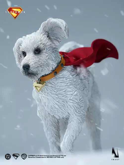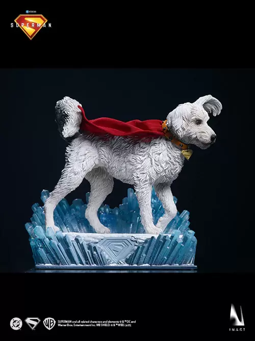 此外這次也收錄了超人的忠犬超狗氪普托(Krypto),細膩重現導演以愛犬 Ozuthe 3D 掃描建模後的超狗形象,雕刻還原逼真的毛髮,單邊翹起的耳朵為整體增添動態感,身上的紅色披風同樣藏有可彎曲鐵絲,可以搭配透明支架重現飛天的模樣!底座部分採用預告片中見到的孤獨堡壘(Fortress of Solitude)水晶風格設計,精緻的在小比例下還原水晶柱與雪地的質感!