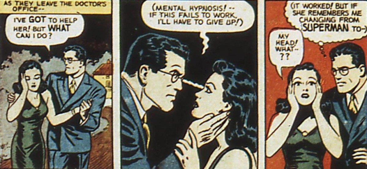 岡恩回憶,他有次跟湯姆金聊到,他從以前就和許多觀眾一樣,不明白克拉克為何戴個眼鏡就能掩飾身份,而湯姆金就告訴他,其實漫畫正史有個設定,是讓克拉克的眼鏡具有催眠功能,使外人分辨不出他就是超人,但很多人都忘記漫畫裡早有安插這樣的設定。
