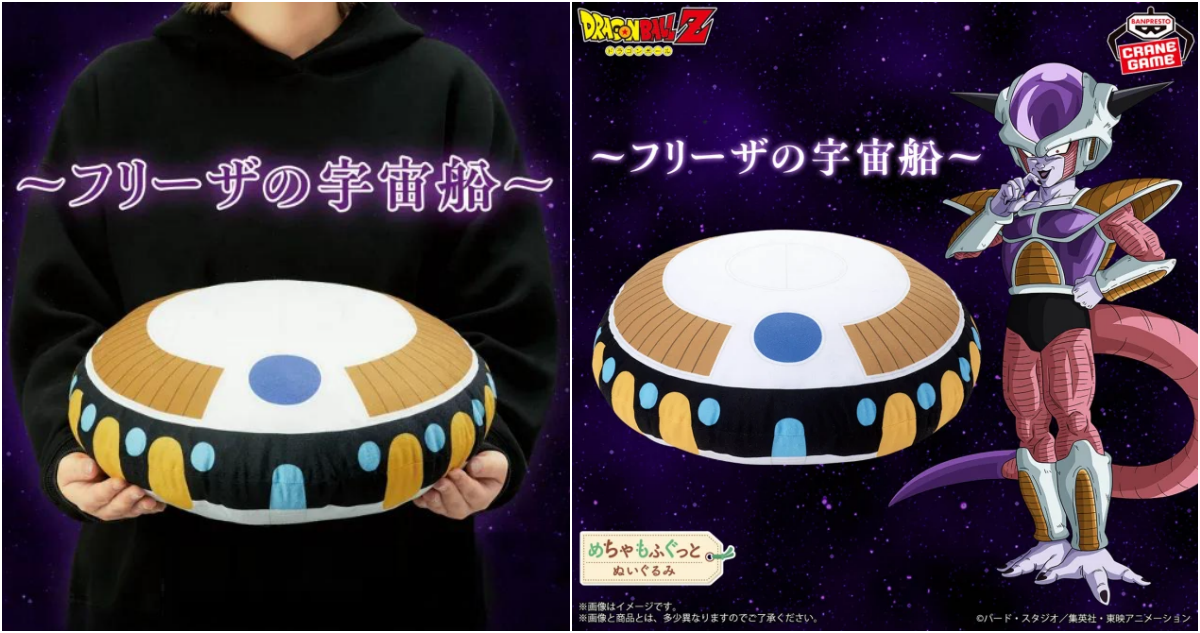 BANPRESTO景品「超蓬鬆的絨毛玩偶~弗利沙的宇宙船」,尺寸約 37 公分,透過絨毛材質還原宇宙飛船標誌性的造型,橢圓的模樣毫無違和感~蓬鬆軟綿的手感加上分量尺寸,除了能夠當抱枕之外,還能與模型或其他玩偶一起擺放,重現七龍珠世界觀!