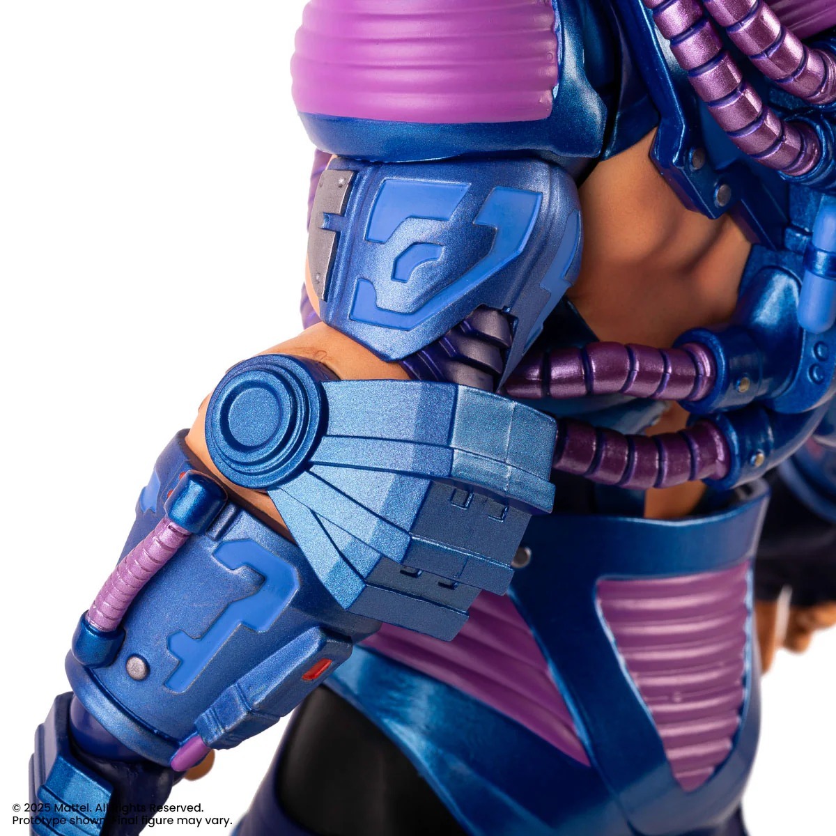 本次的三面人 1/6 比例可動人偶高約 33 公分,參考了過去的多款商品和作品中的形象打造,雕刻展現他無比精實的肌肉線條,身上的太空戰服由設計團隊打造出了複雜的造型細節,讓整體的視覺魄力大幅提升!而這次最大的特色是參考了經典的迷你漫畫以及從未公開過的、太空超人系列原創作者之一的 Mark Taylor 的手稿,提供了三顆、每顆四面臉的頭雕替換件,除經典的人臉、機器人臉以及蜥蜴人臉外額外收錄了 9 種造型,大大的提升了把玩的變化性!