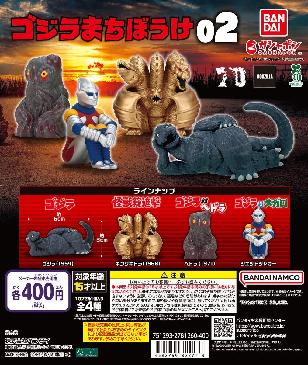 日本萬代公司轉蛋玩具品牌 GASHAPON 旗下好評的「等待中(まちぼうけ)」系列,在超人氣的「東寶怪獸 哥吉拉」後,再度推出第二彈最新商品:『等待中的東寶怪獸 哥吉拉02』轉蛋,參考售價為一轉 400 日圓,共有 4 種款式,預計於 2025 年 07 月開轉~