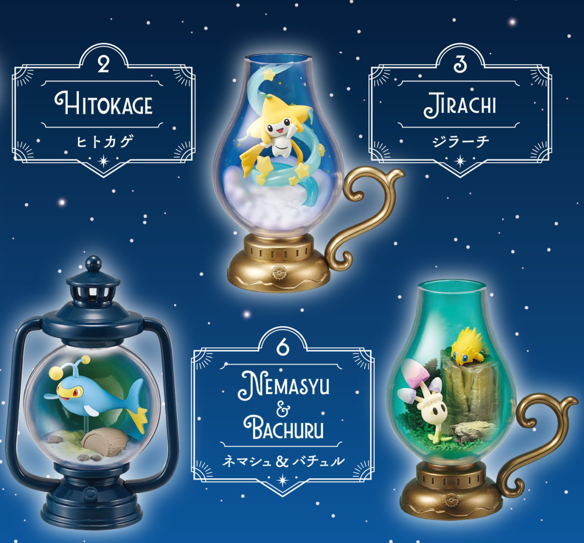 RE-MENT 再度以寶可夢+場景的形式製作全新商品,不過這次更融合了提燈元素。把寶可夢與相對應的棲息場景、放鬆休息的環境全部裝進提燈當中,打造出具備古典美感與精緻質感的寶可夢作品。提燈的造型一共三種、每種各有兩樣配色,小編個人認為是只要買一款就能充分感受到其魅力的新作。