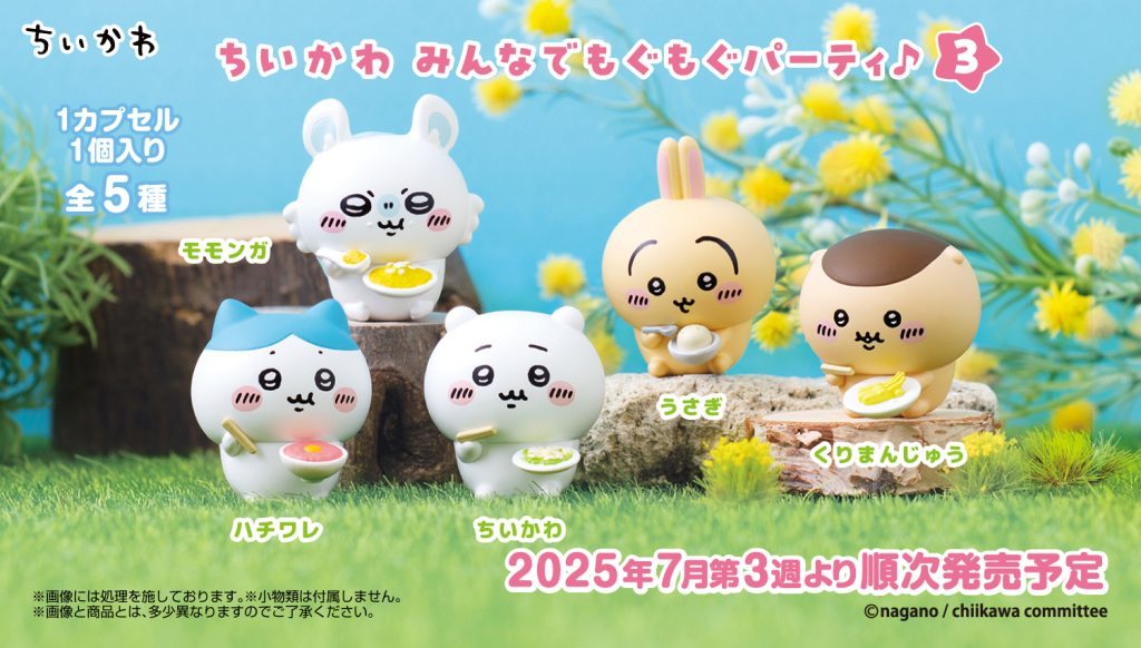 日本萬代公司旗下轉蛋事業部 GASHAPON,將推出超人氣《吉伊卡哇》主題的最新商品:「吉伊卡哇 大家的美食派對♪3」轉蛋!一轉參考售價為 400 日圓,預計將於 2025 年 07 月開轉~
